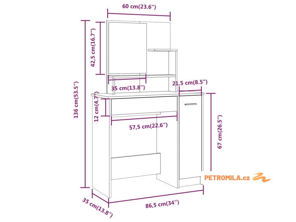 - Rozměry: 86,5 x 35 x 136 cm (Š x H x V)