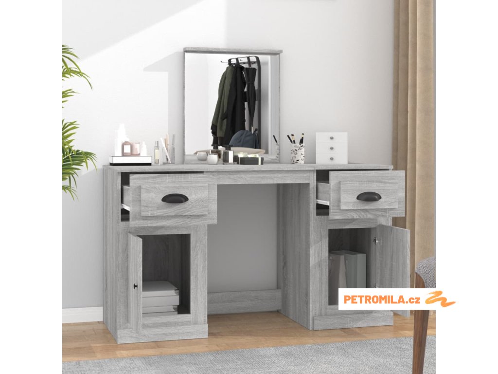 Toaletní stolek se zrcadlem šedý sonoma 130 x 50 x 132,5 cm