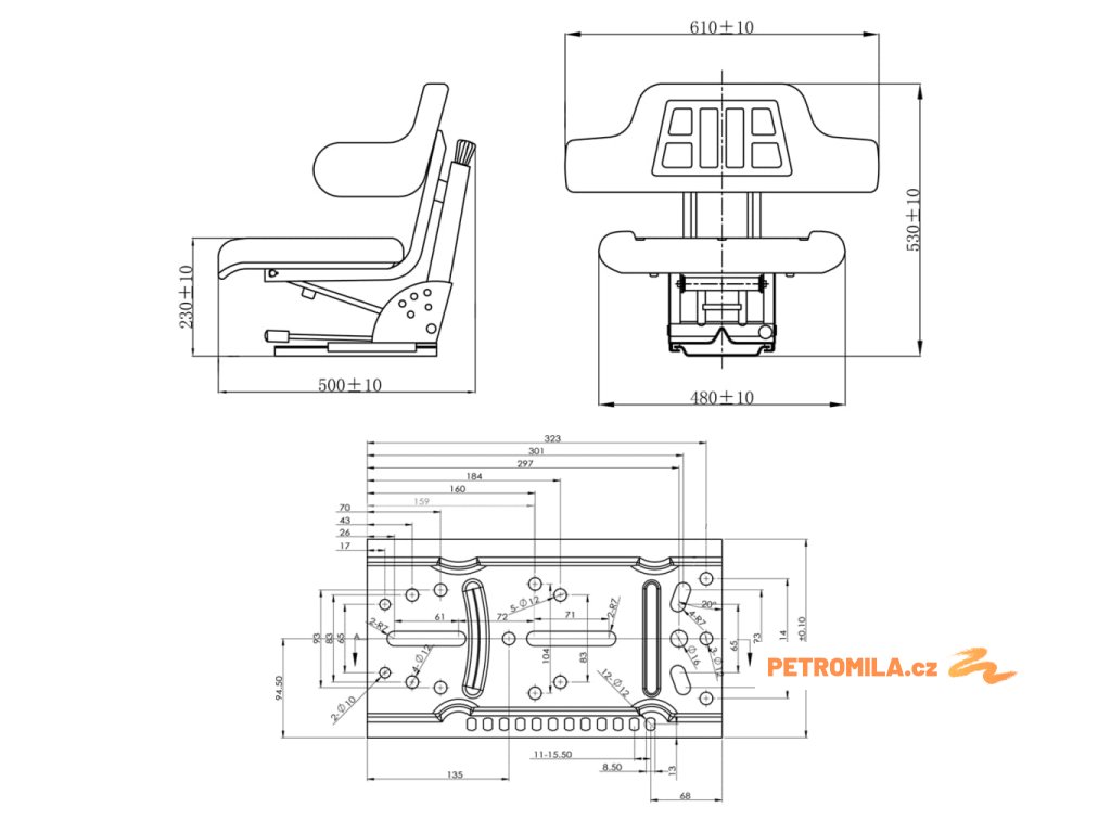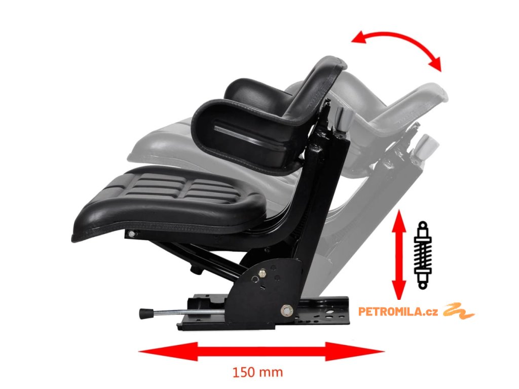 Tato vysoce kvalitní traktorová sedačka s opěradlem vám poskytne zvýšené pohodlí. Je polstrovaná speciální pěnou pro příjemný komfort. Robustní odpružení tohoto traktorového sedadla zajišťuje tu nejhladší možnou jízdu na vašem traktoru. Traktorová sedačka je opatřena posuvnou dráhou pro snadnou a flexibilní instalaci. Odpružení je určeno pro zátěž v rozmezí 50–130 kg. Množství montážních otvorů na základové desce je určeno pro mimořádnou pevnost. Černé čalounění opěradla traktorové sedačky je velmi odolné a voděodolné. 150mm podélné nastavení umožňuje větší praktičnost a pohodlí. Mechanické odpružení s pružinou je součástí, aby pohlcovalo hrubé terénní vibrace.