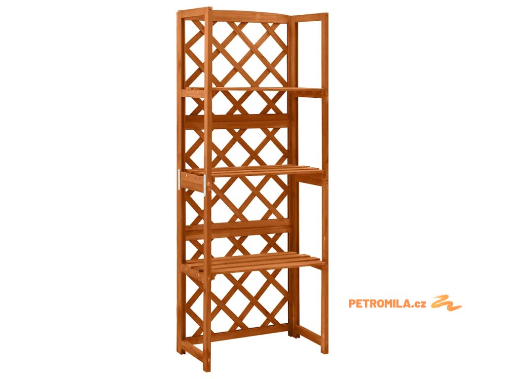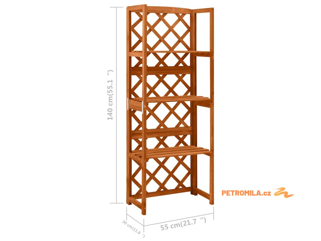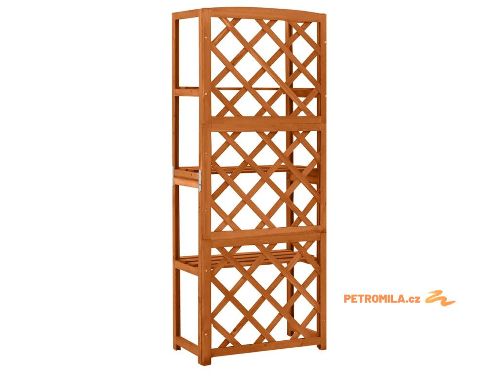 Tato zahradní treláž je vyrobena z masivního jedlového dřeva, proto je odolná a vhodná pro venkovní použití. Nabízí stabilní oporu pro růže a další popínavé rostliny. Stojan na rostliny má 3 police, na které můžete umístit rostliny v květináčích a zahradní dekorace.