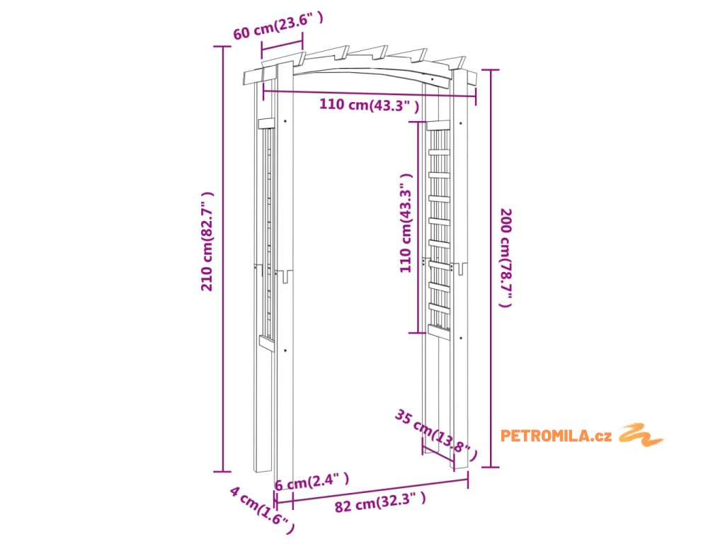 Trelážový oblouk 110x60x210 cm impregnovaná masivní borovice