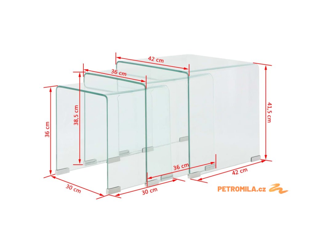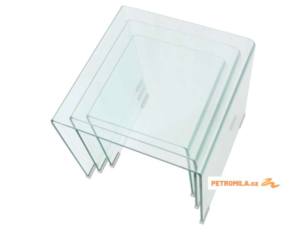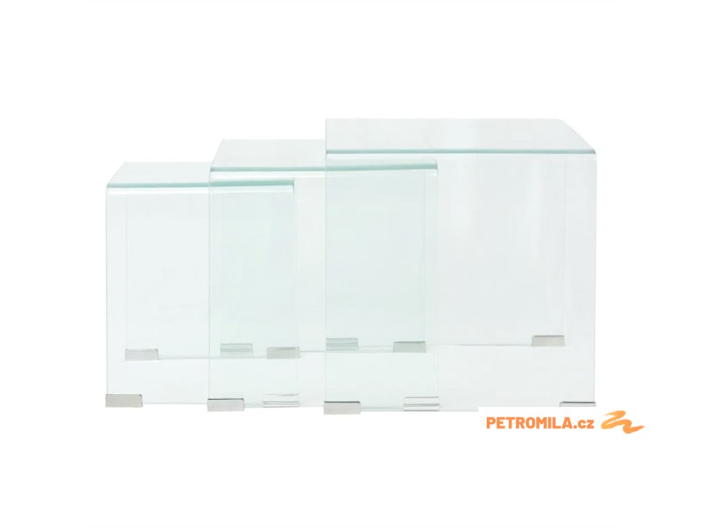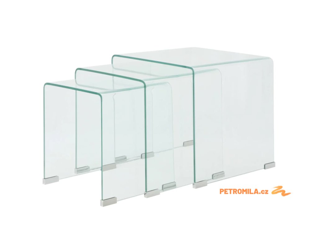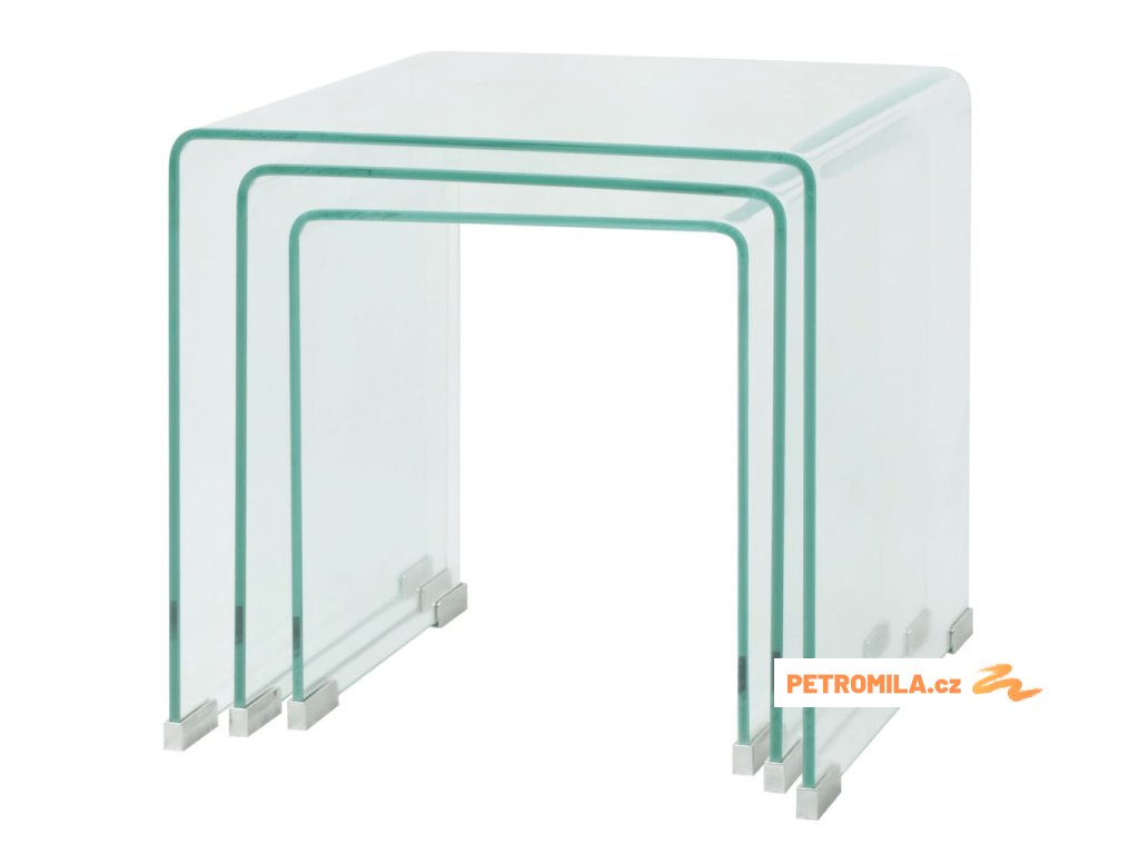 Tři hnízdové stolky, tvrzené sklo čiré