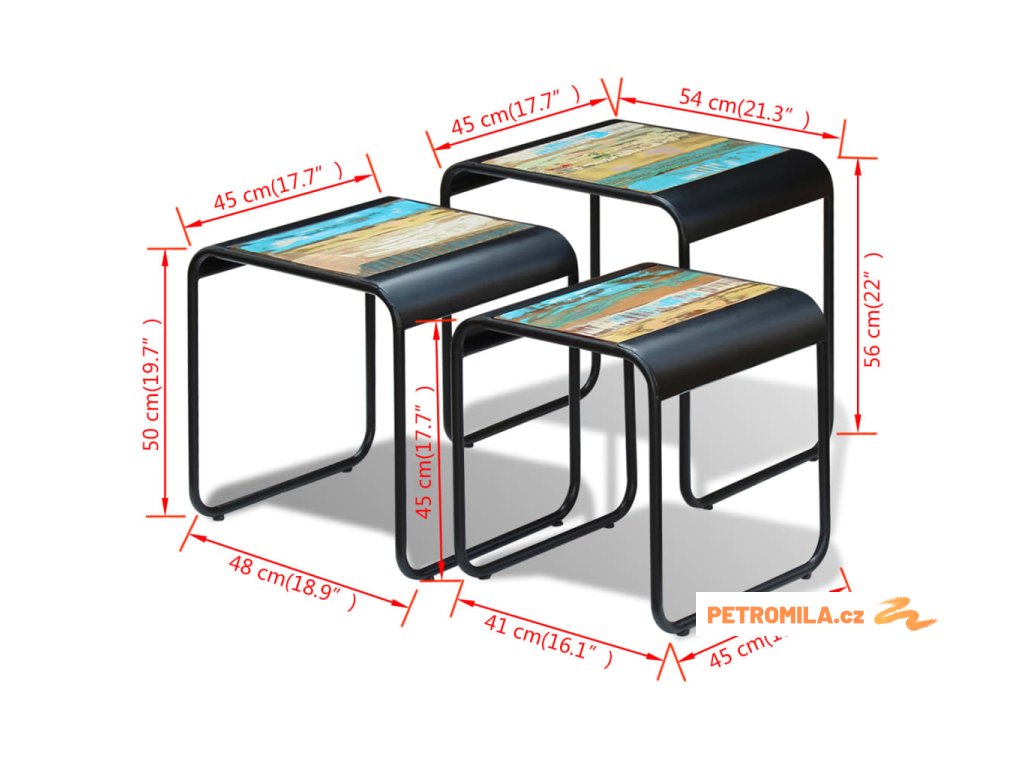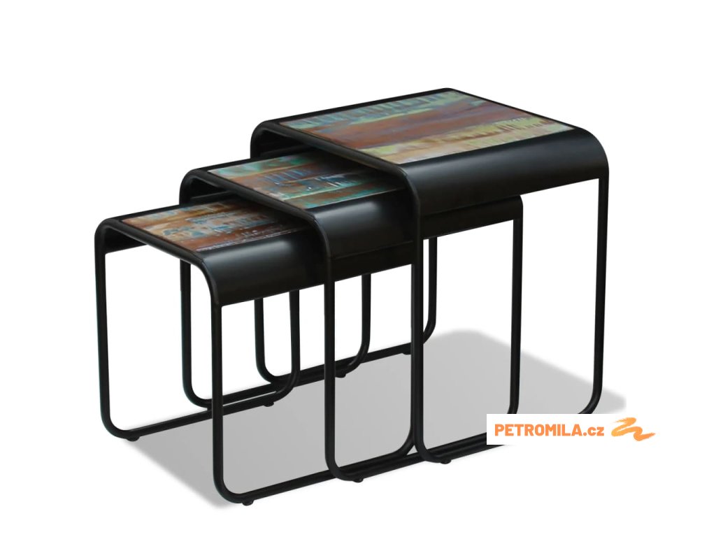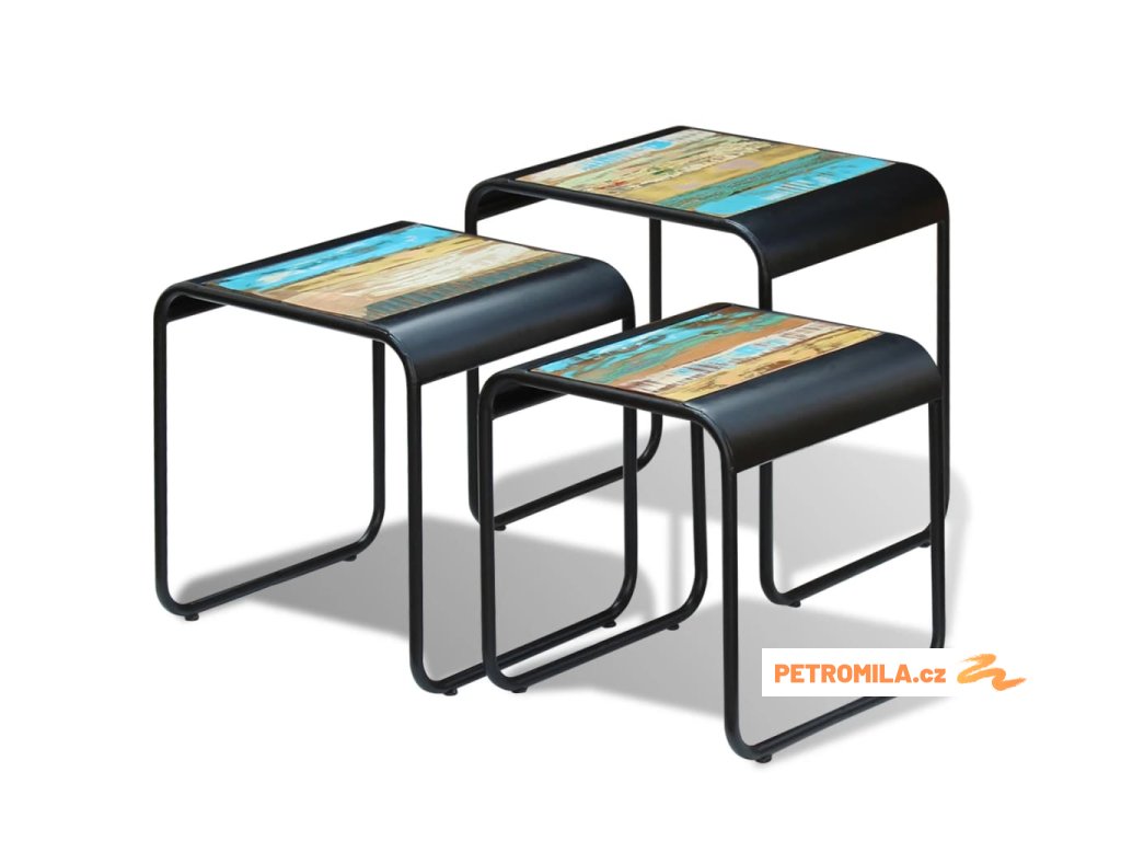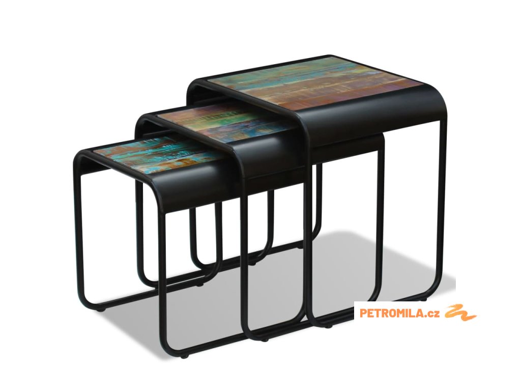 Tato vintage sada 3 dřevěných stohovatelných stolků, vyrobených z masivního recyklovaného dřeva, bude nadčasovým doplňkem do vaší domácnosti. Dřevěné stolky se dají používat jako konferenční stolky, stolky ke gauči, stolky do obývacího pokoje, odkládací stolky, noční stolky, telefonní stolky apod. Díky svým pevným ocelovým rámům jsou tyto stolky velmi stabilní a odolné. Protože jsou stohovatelné, ušetří vám spoustu místa, když je zrovna nebudete používat.