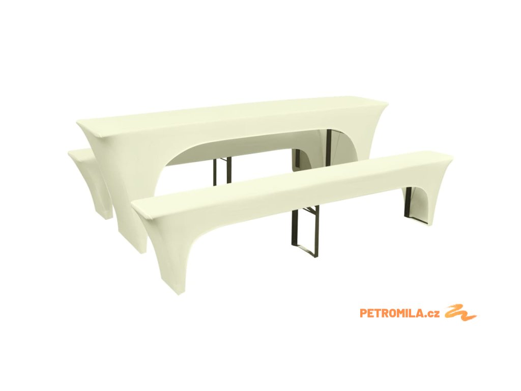 Tři strečové návleky na pivní stůl / lavice, krémové