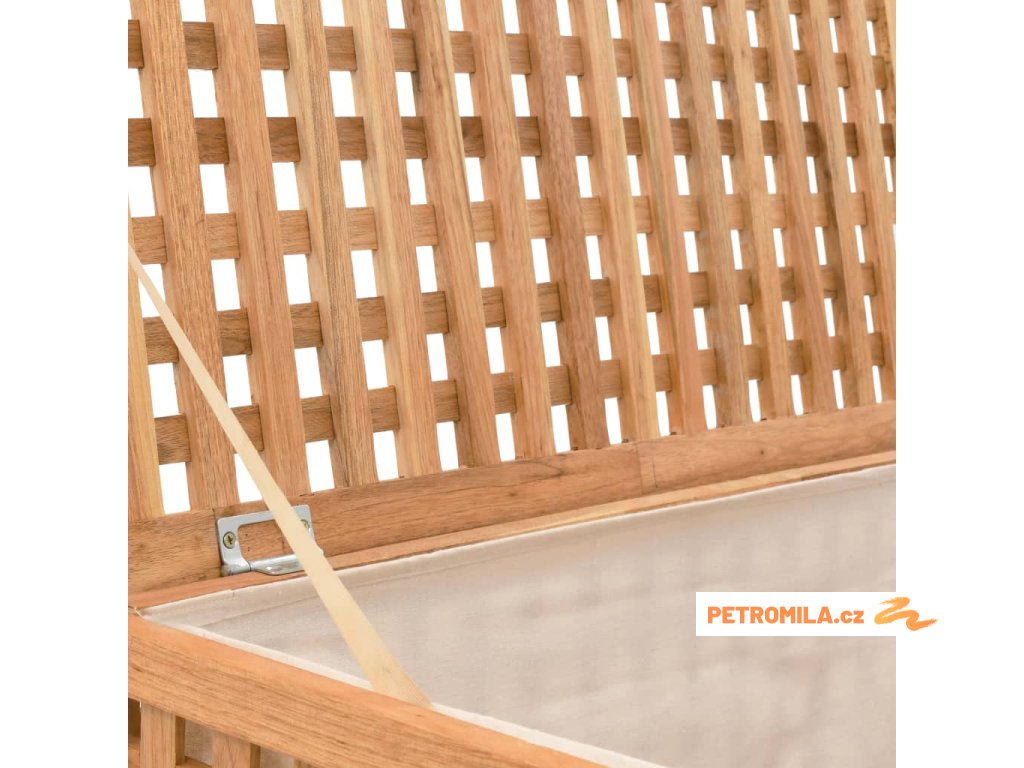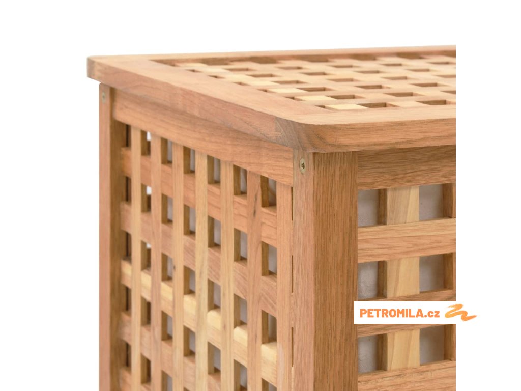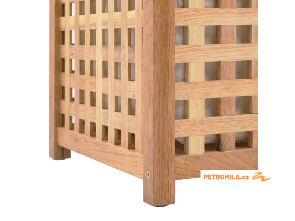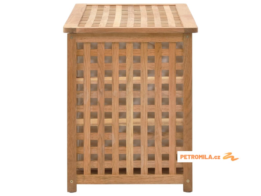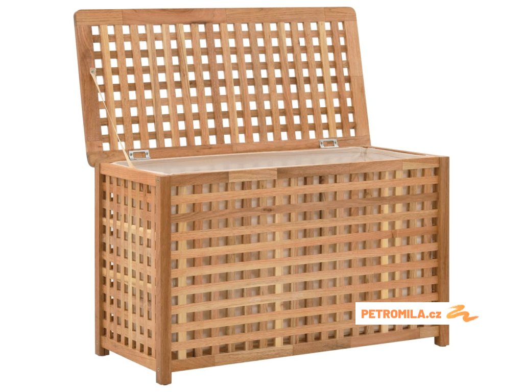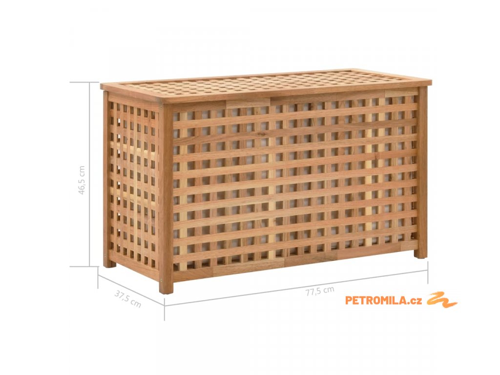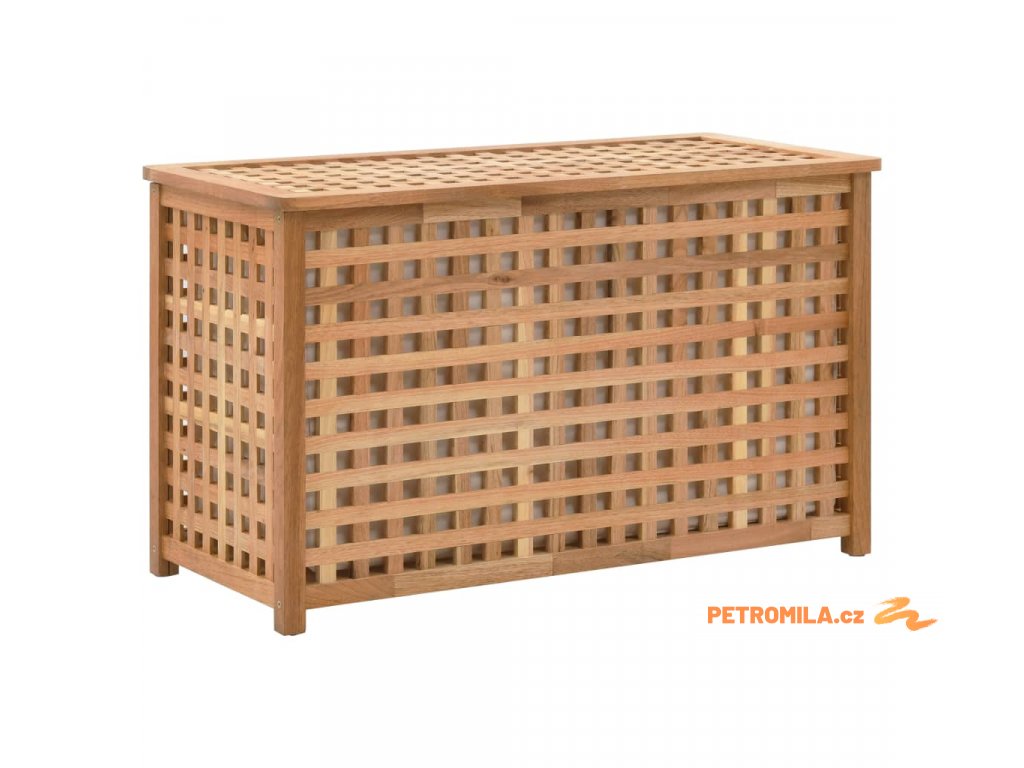 Truhla na prádlo poskytuje dostatek místa pro ukládání věcí, jako jsou například ručníky, prádlo atd. Mřížkovaný design umožňuje dobré větrání věcí uvnitř. Truhla na prádlo je vyrobená z masivního ořechového dřeva a překližky, a je tudíž robustní a velmi odolná. Textilní vložku uvnitř úložné truhly lze vyjmout a vyprat.
