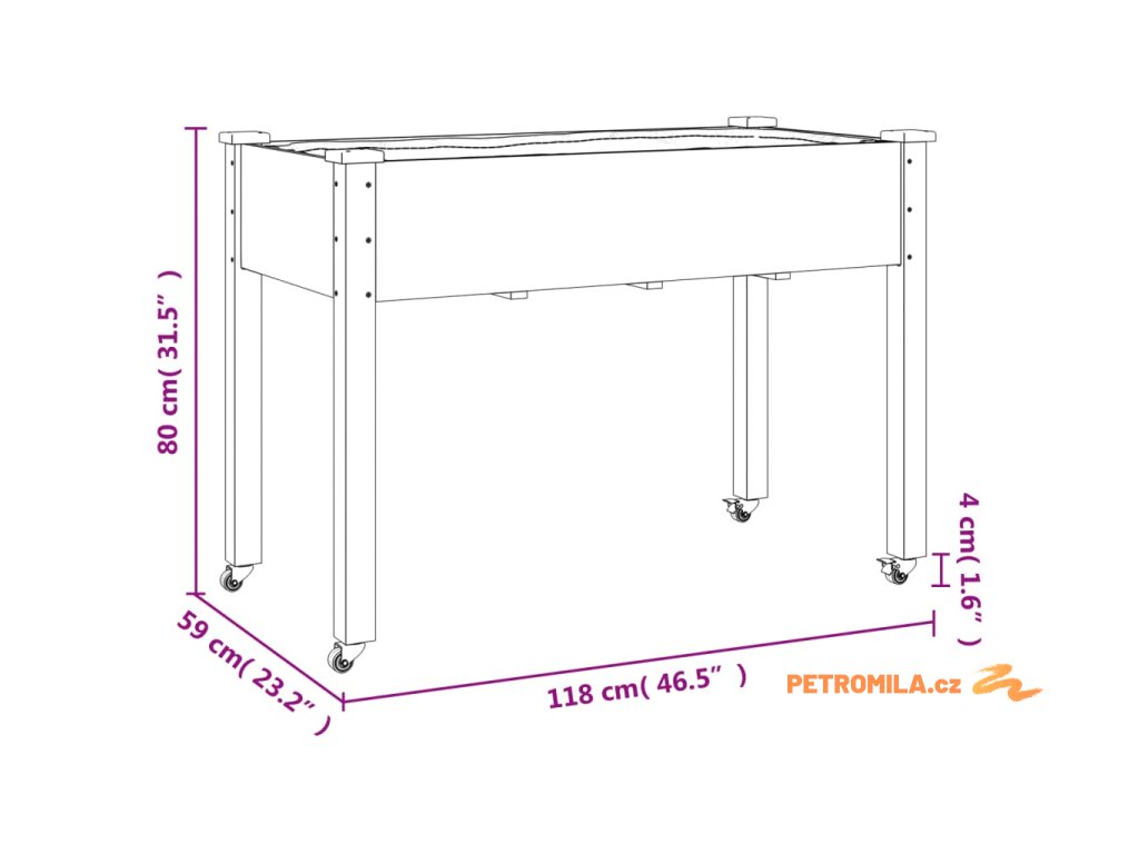 - Rozměry truhlíku: 118 x 59 x 76 cm (D x Š x V)