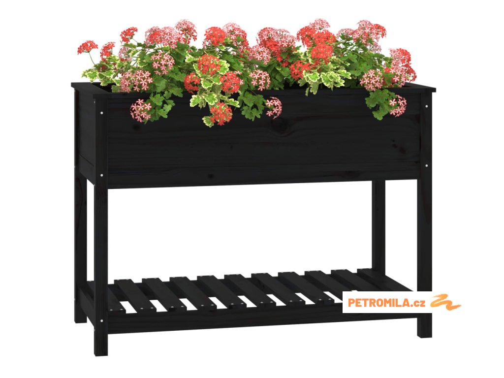 Truhlík s policí černý 111,5 x 54 x 81 cm masivní borové dřevo