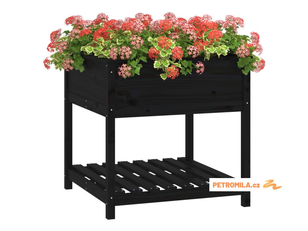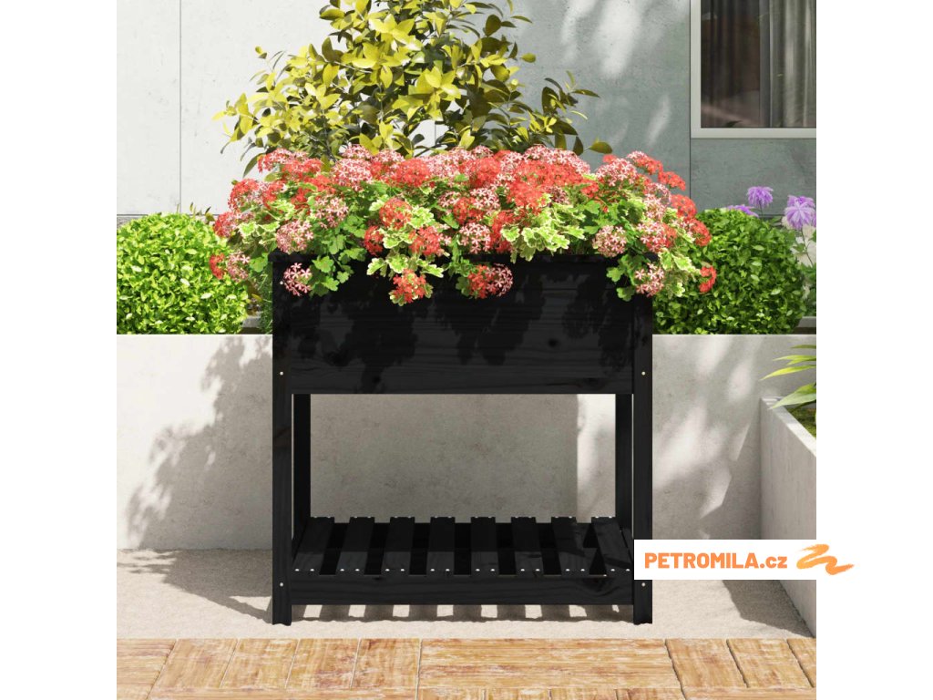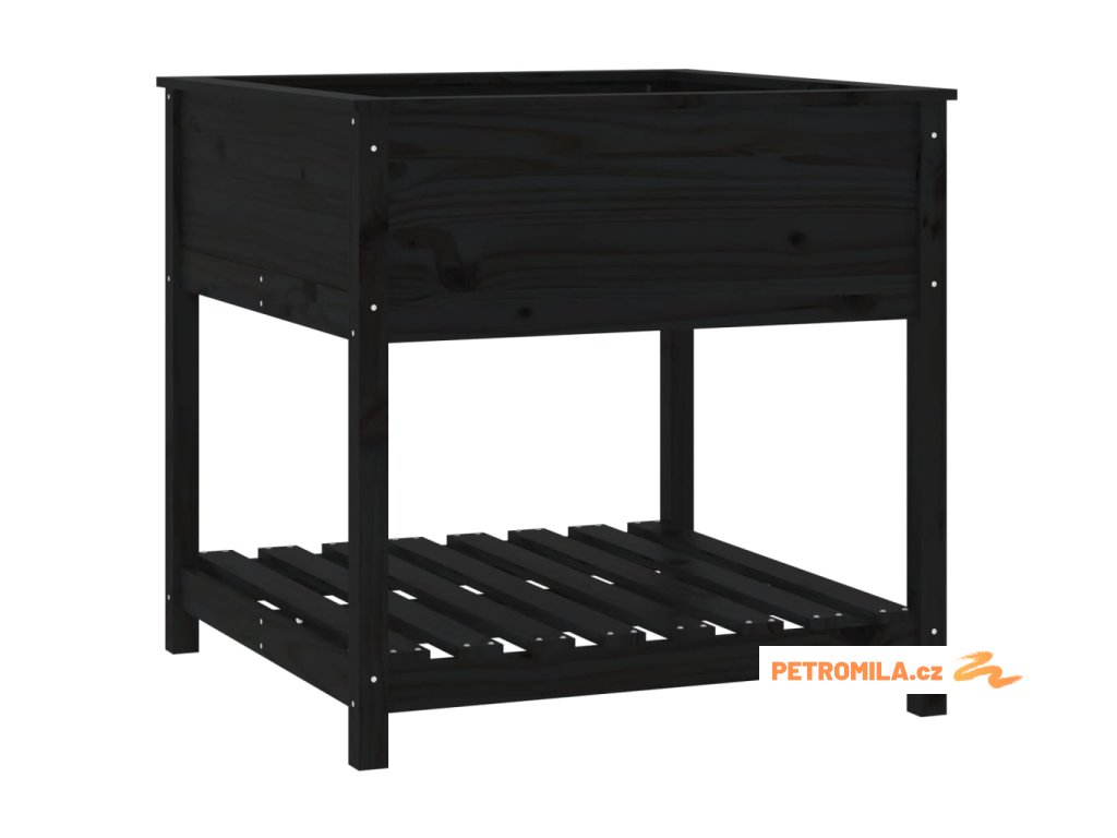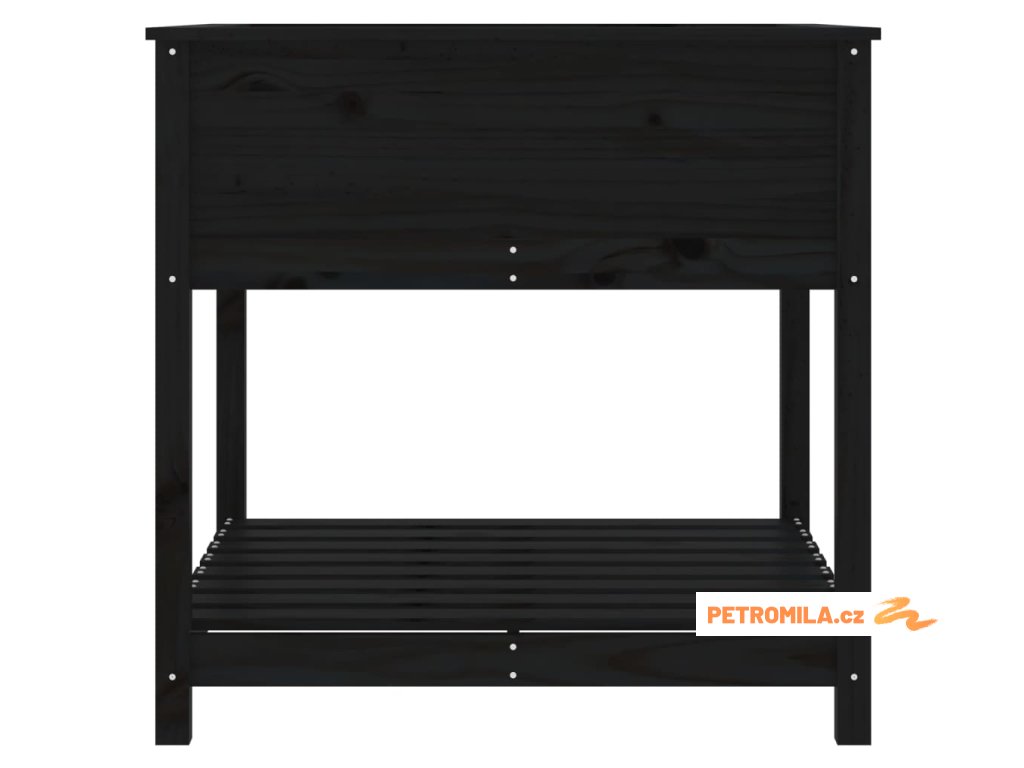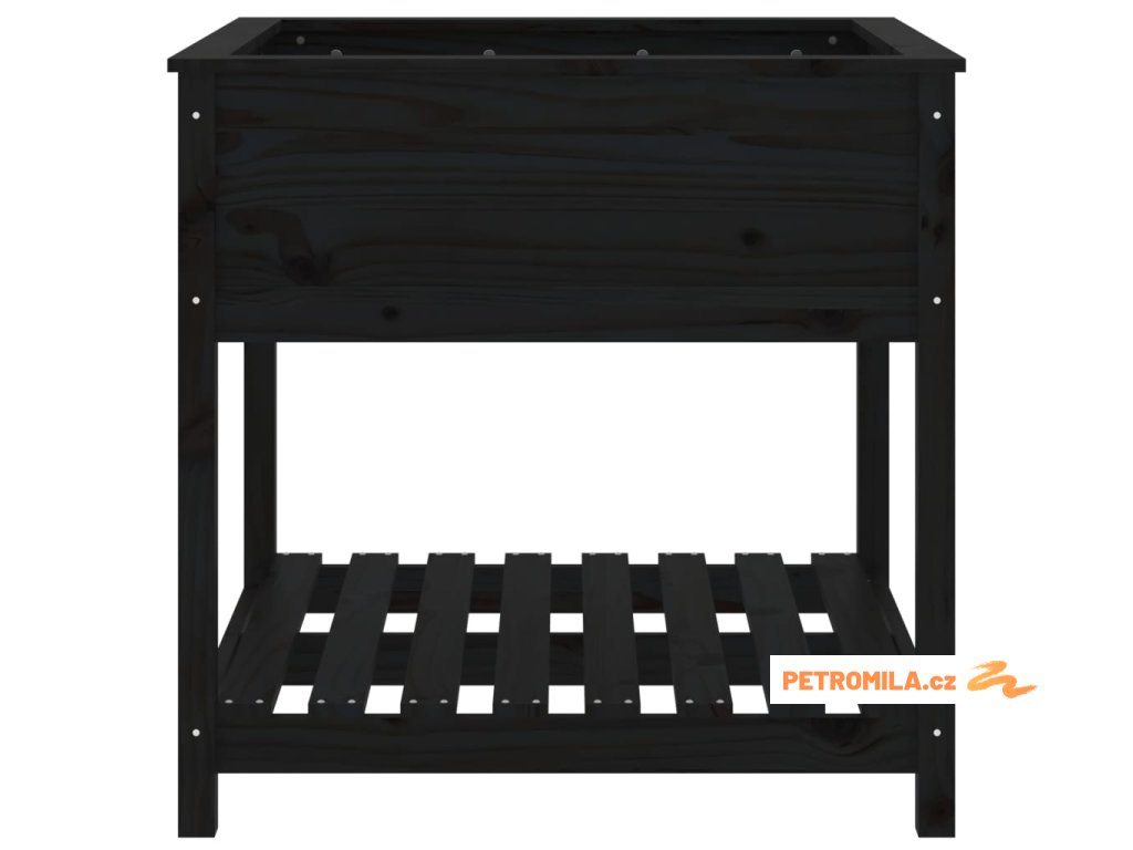 Truhlík s policí černý 82,5 x 82,5 x 81 cm masivní borové dřevo