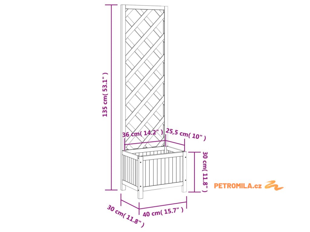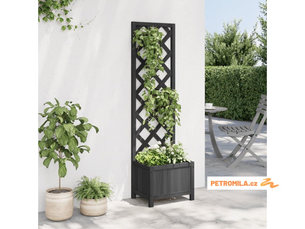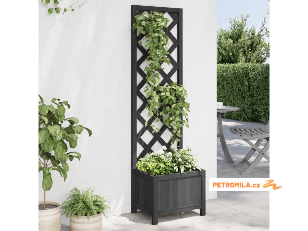 Tento dřevěný truhlík s treláží představuje skvělé řešení pro pěstování popínavých rostlin na zahradě, verandě nebo terase.