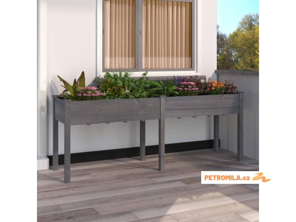 Truhlík s vložkou šedý 203 x 53 x 76 cm masivní jedlové dřevo