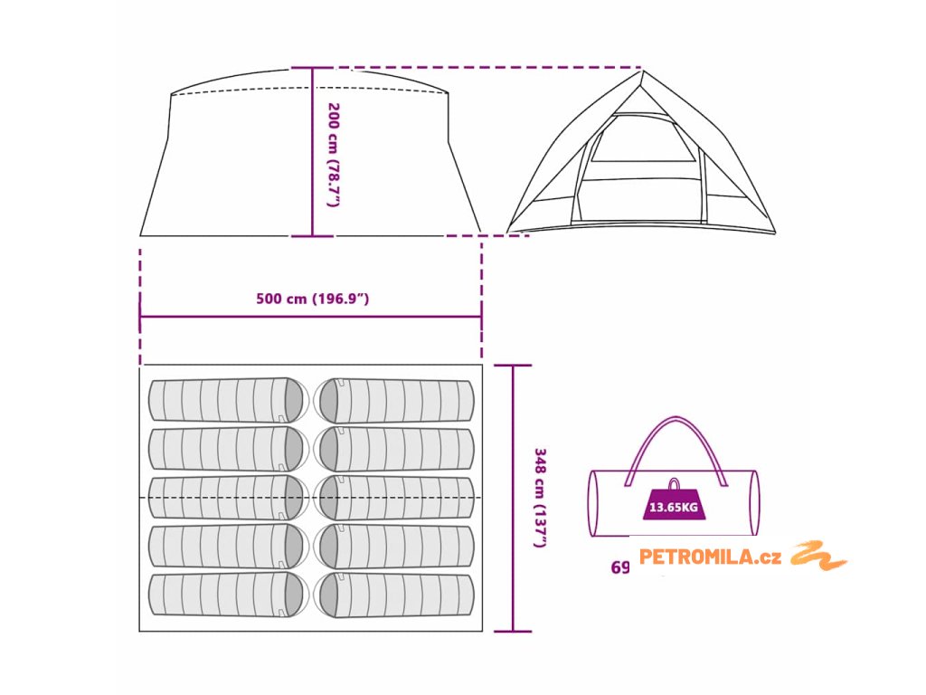 - Celkové rozměry: 500 x 348 x 200 cm (D x Š x V)