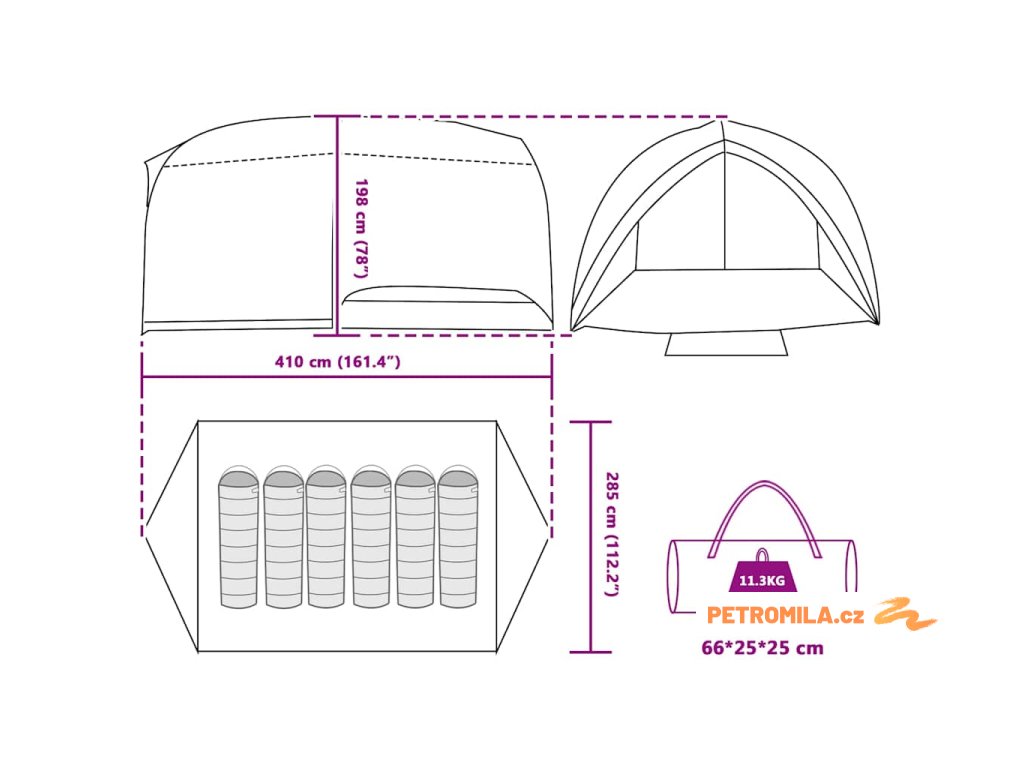 - Celkové rozměry: 410 x 285 x 198 cm (D x Š x V)
