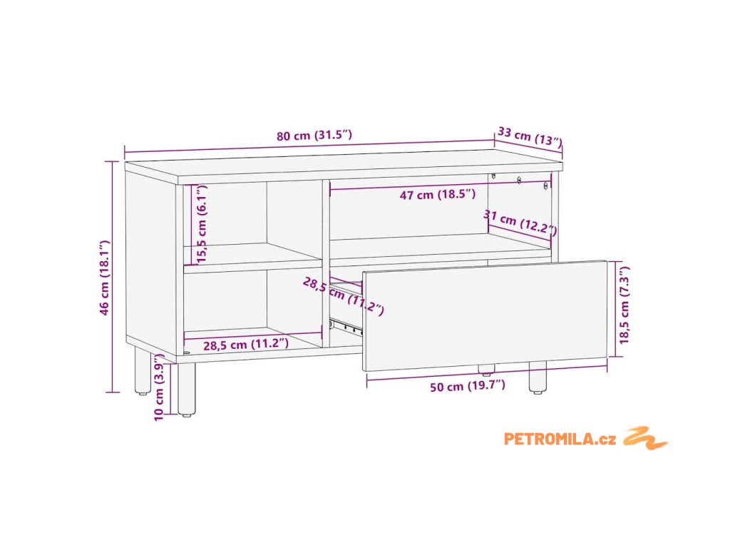 - Celkové rozměry: 80 x 33,5 x 46 cm (D x Š x V)