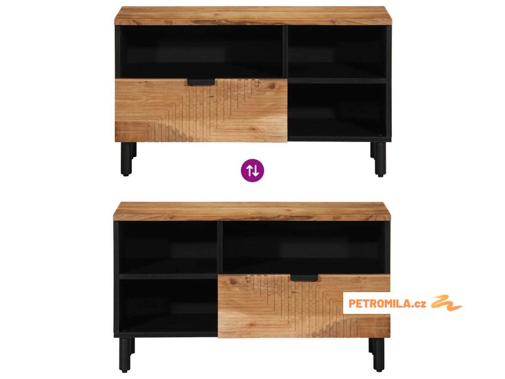 - Jasné úložné možnosti: Skříňka má prostorné police a tradiční zásuvky, kde si udržuješ všechny věci na dosah. Kombinace otevřeného a uzavřeného prostoru dávají svobodu, jak si to uspořádat.