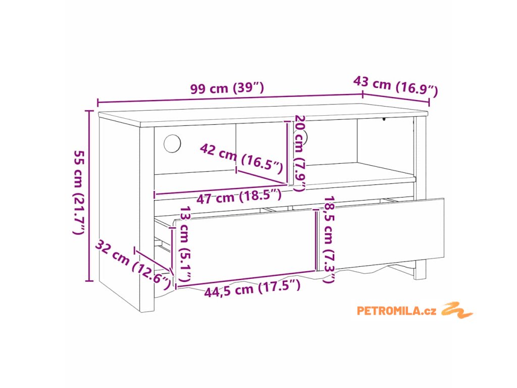 TV skříň Drammen Dub 99 x 43 x 55 cm Masivní borové dřevo