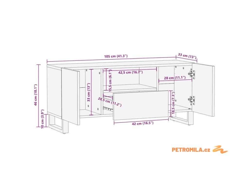 TV skříň Hnědá 105 x 33 x 46 cm masivní mangovníkové dřevo