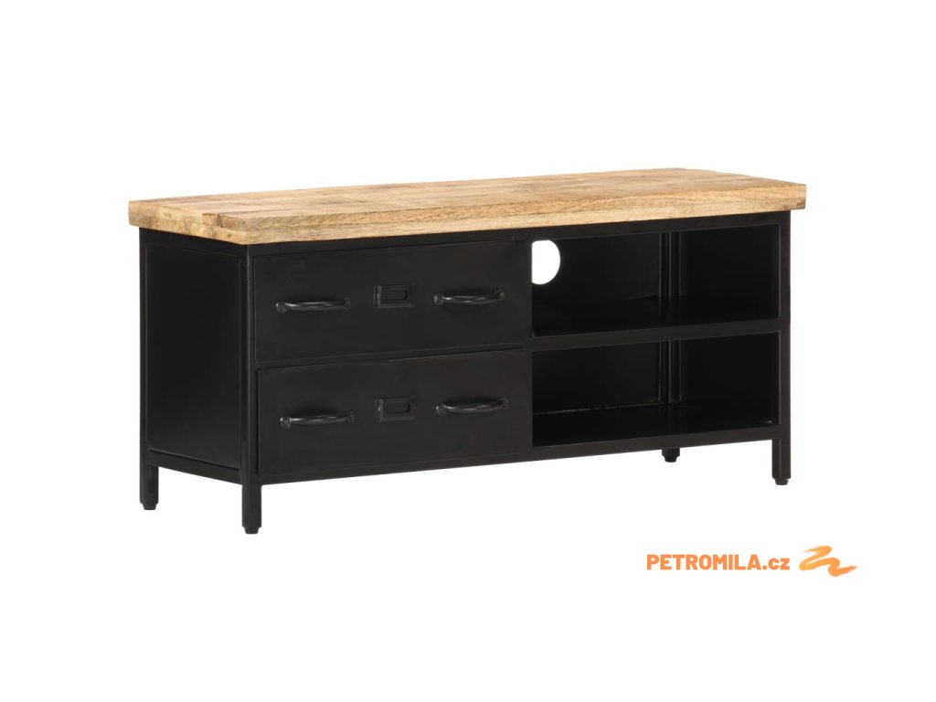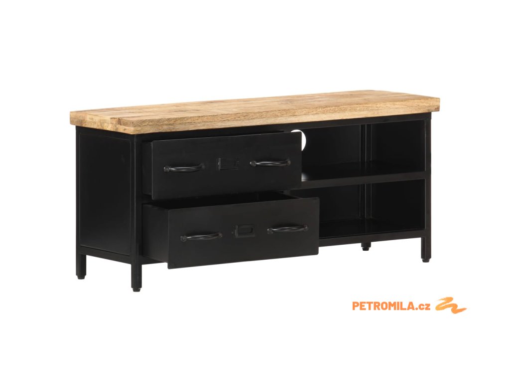 Stereo skříňka je vyrobená z masivního hrubého mangovníkového dřeva. Mangovník je tropické tvrdé dřevo, které unese velkou váhu. Rovněž výborně vzdoruje opotřebení, a proto je TV stolek stabilní a má dlouhou životnost. Železo s černým práškovým lakem v kombinaci s ocelí přispívá ke stabilitě tohoto nízkého stolku. Řemeslné zpracování a krásná kresba dřeva dává každému kusu nábytku jeho jedinečný a od všech ostatních mírně odlišný charakter. Tento mediální stolek má také 2 zásuvky a 2 přihrádky, které poskytují dostatek úložného prostoru pro organizaci důležitých věcí na dosah ruky.