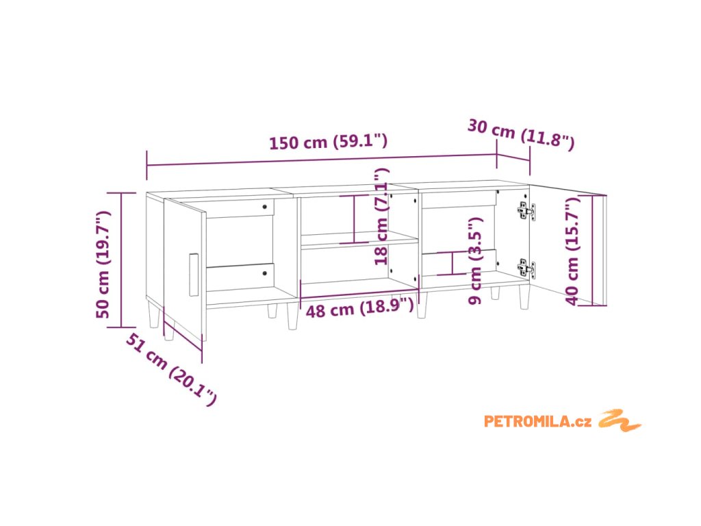 - Rozměry: 150 x 30 x 50 cm (Š x H x V)