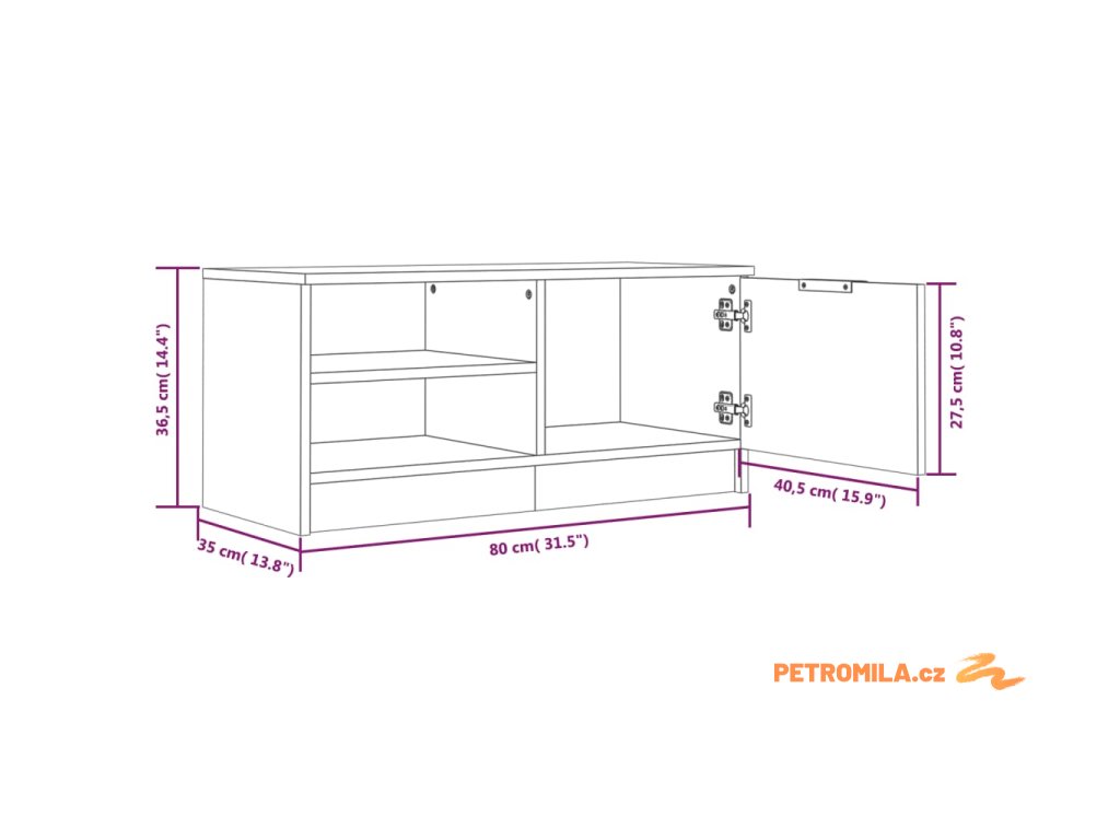 TV skříňka bílá s vysokým leskem 80x35x36,5 cm kompozitní dřevo