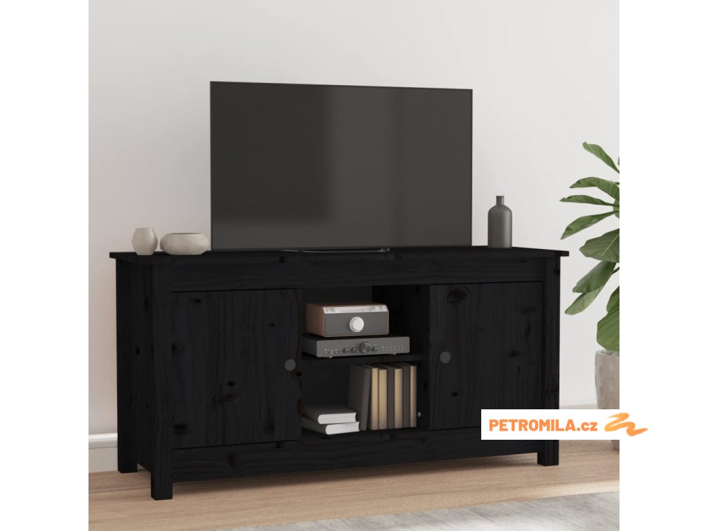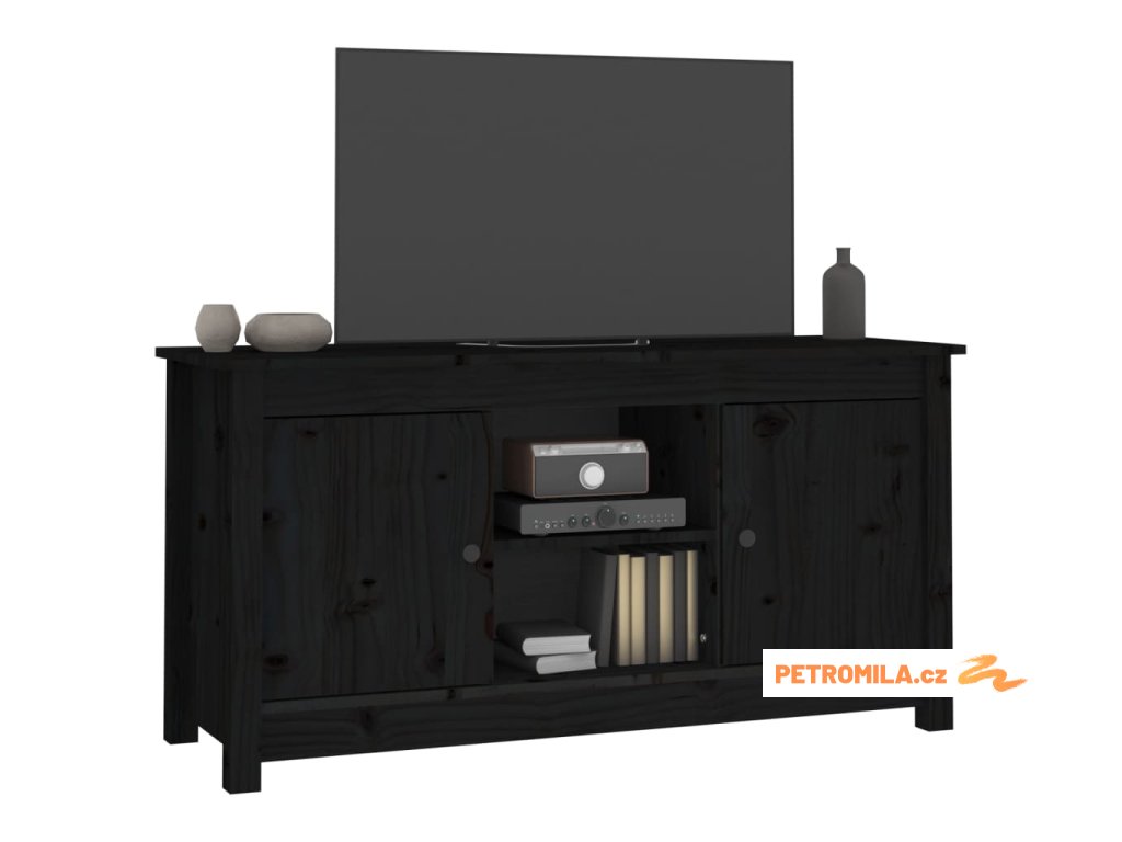 TV skříňka černá 103 x 36,5 x 52 cm masivní borové dřevo