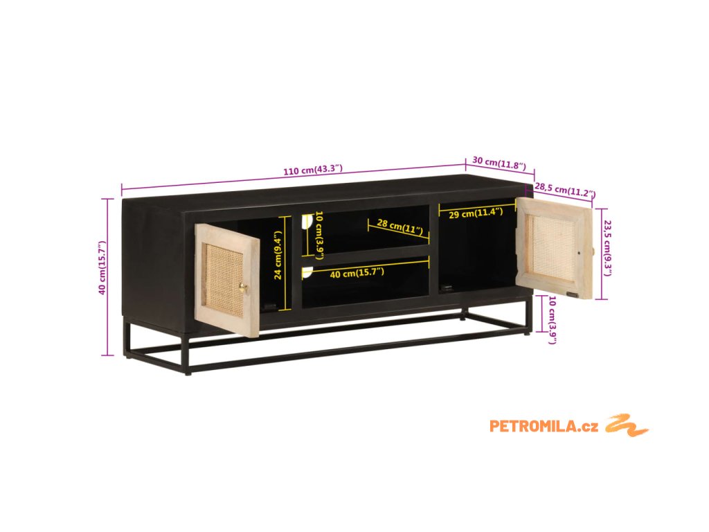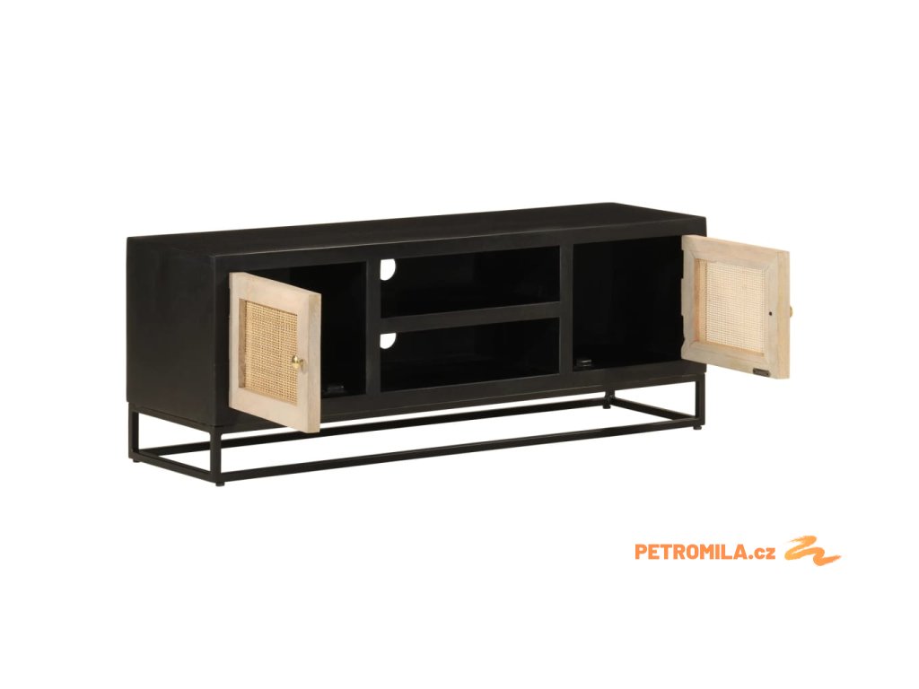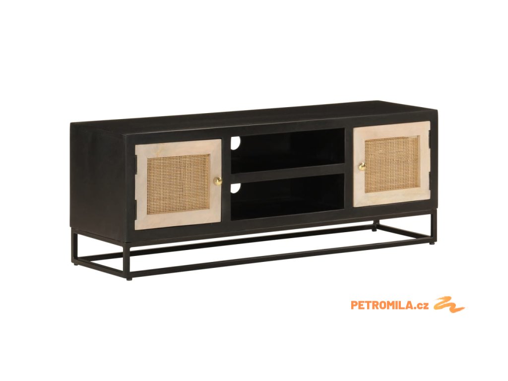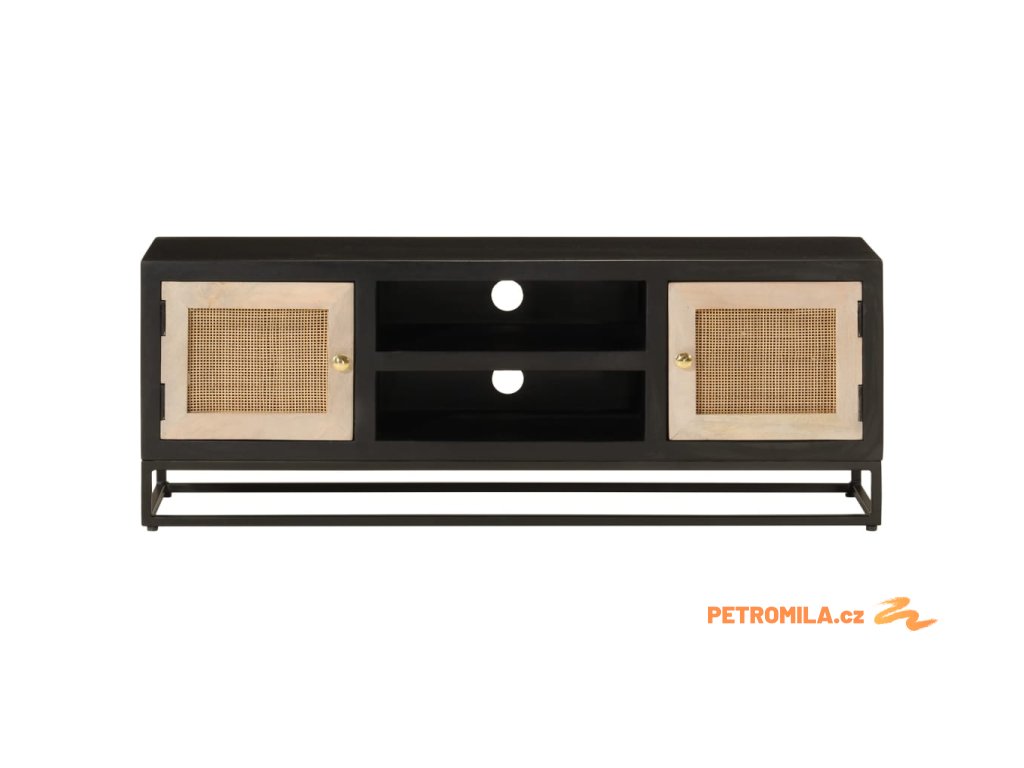 TV skříňka černá 110 x 30 x 40 cm masivní mangovník a železo