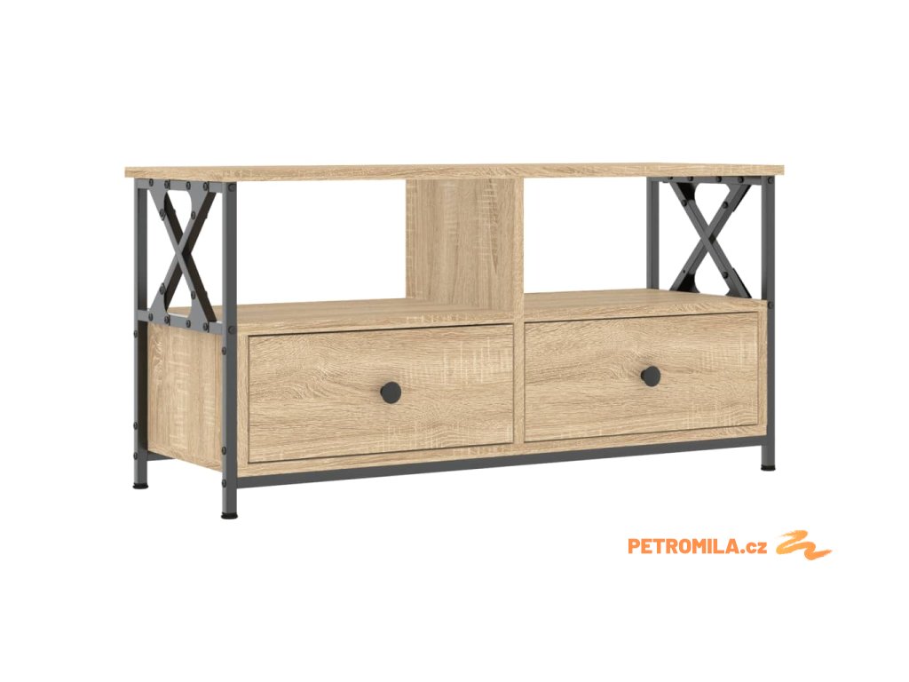 TV skříňka dub sonoma 90 x 33 x 45 cm kompozitní dřevo a železo