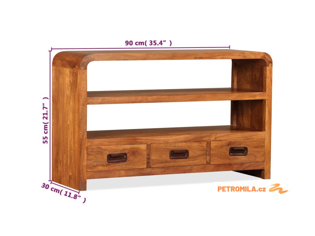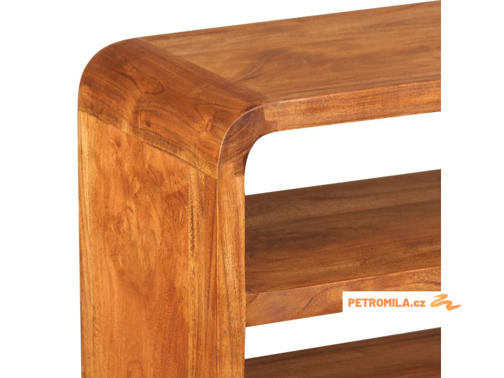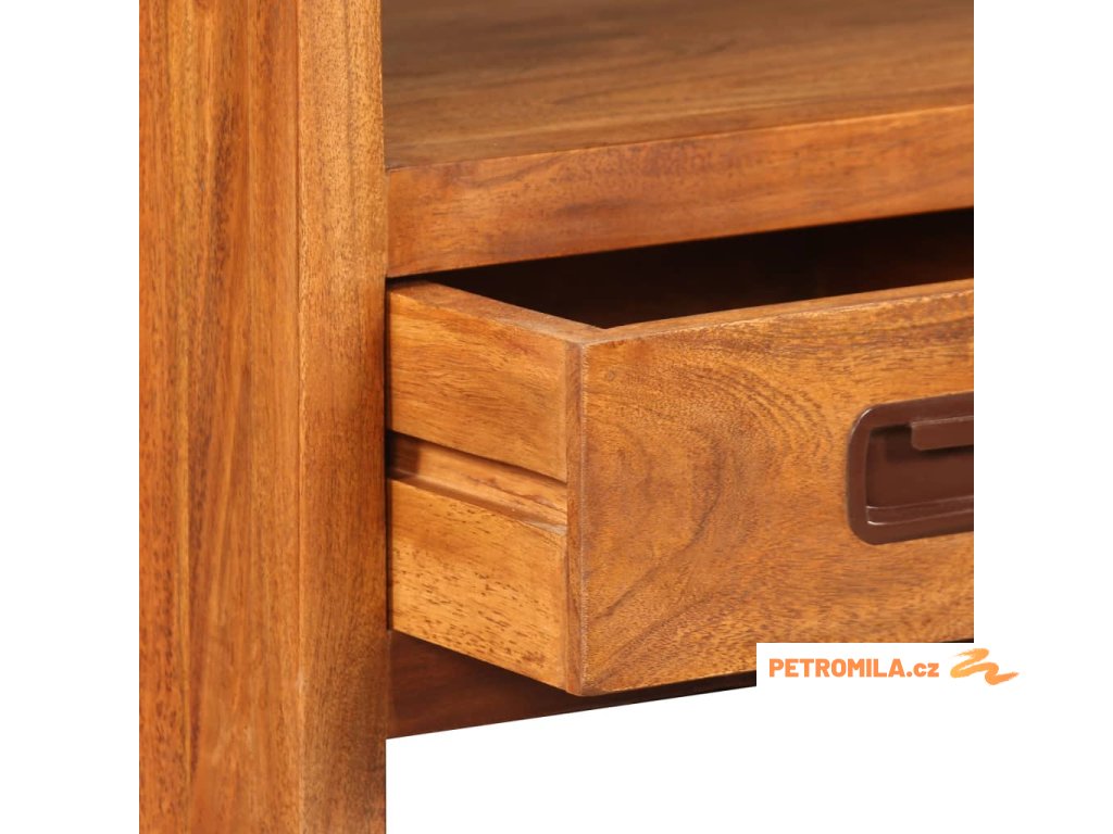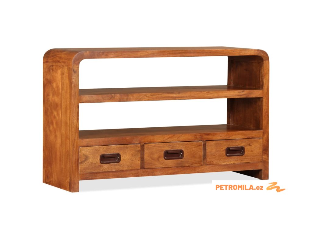 Tato skříňka na multimediální zařízení je zhotovená z masivního akáciového dřeva. Akácie je odolné tropické tvrdé dřevo. Tato skříňka pod televizi je celá ručně vyrobená a překrásná kresba dřeva propůjčuje každému kusu jedinečný a od ostatních lehce odlišný charakter. Je vybavená 2 policemi a 3 zásuvkami, na které se vejde všechno vaše multimediální vybavení, nosiče médií a ostatní předměty, které si chcete vystavit či schovat někde po ruce. Tento výrobek je dodávaný ve složeném stavu, montáž není nutná.