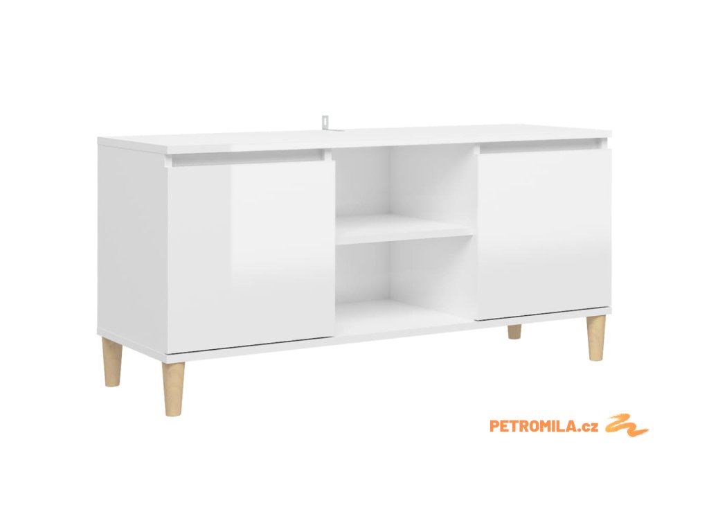 TV skříňka nohy z masivního dřeva bílá lesklá 103,5x35x50 cm