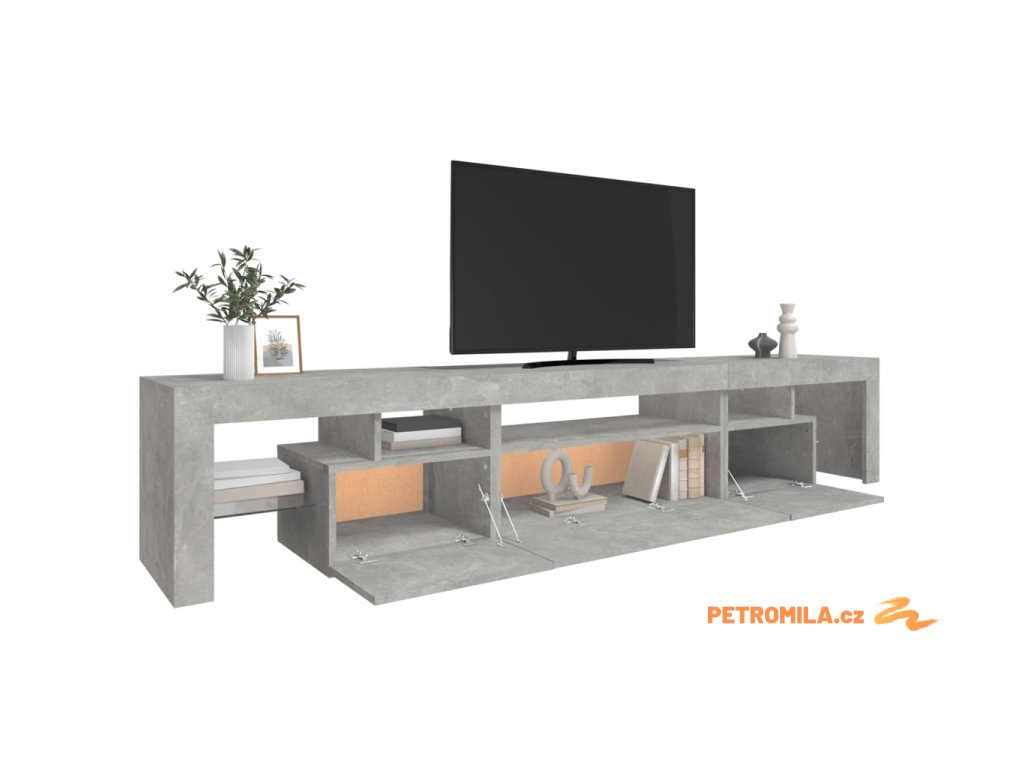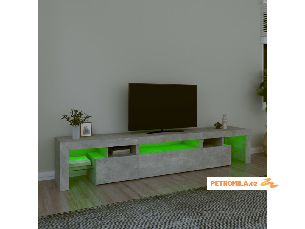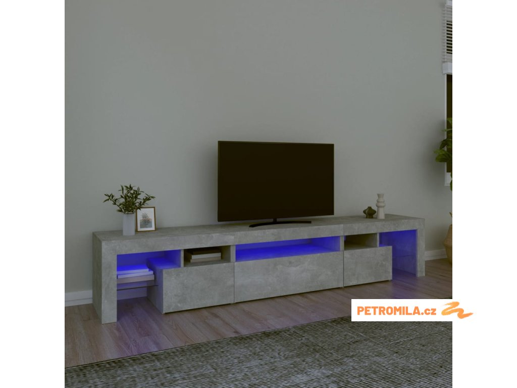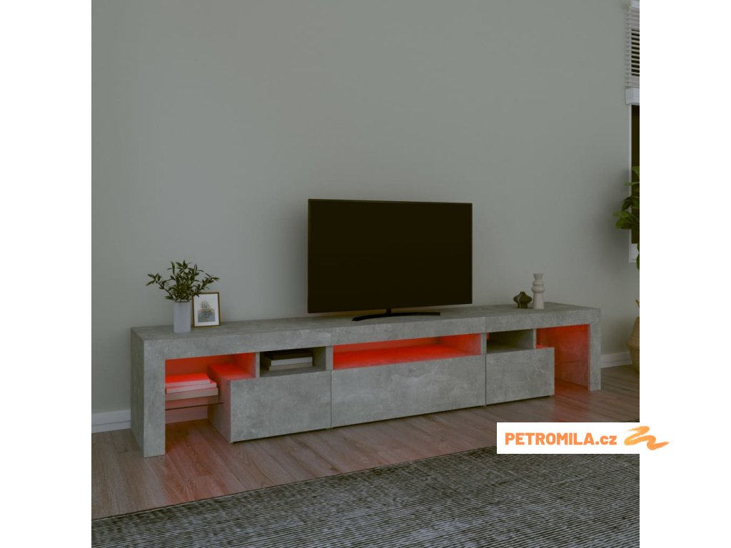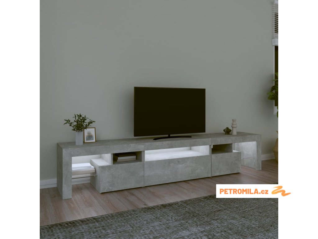 TV skříňka s LED osvětlením betonově šedá 215x36,5x40 cm