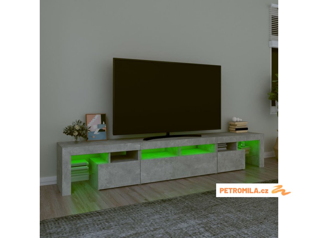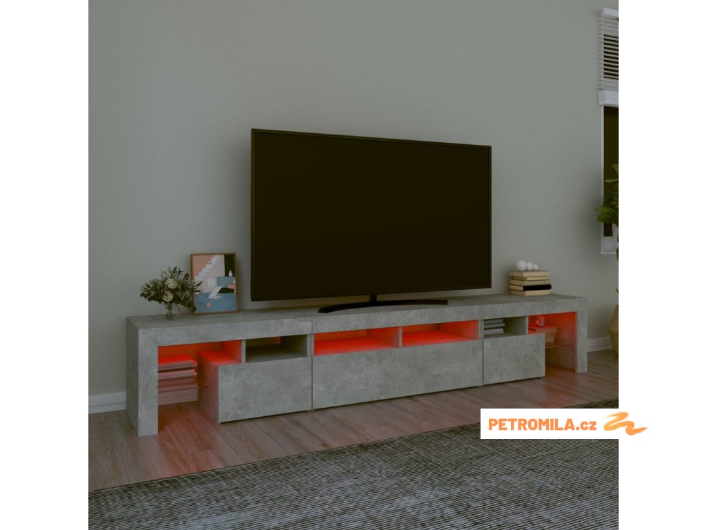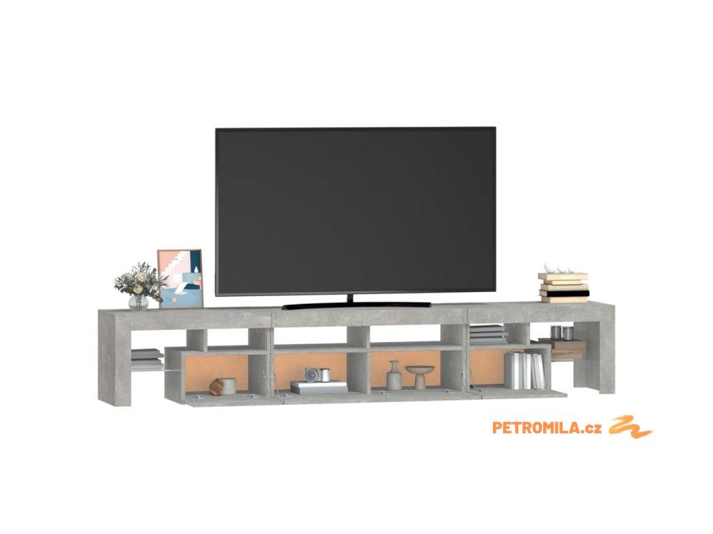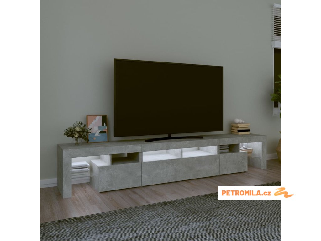 TV skříňka s LED osvětlením betonově šedá 230x36,5x40 cm