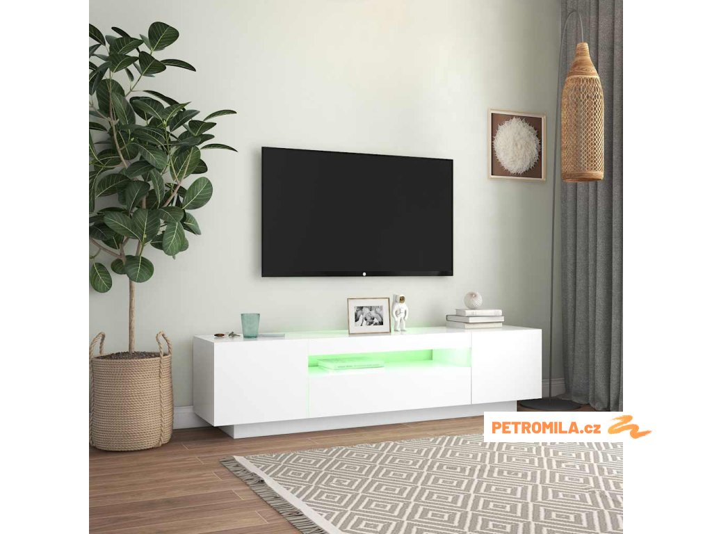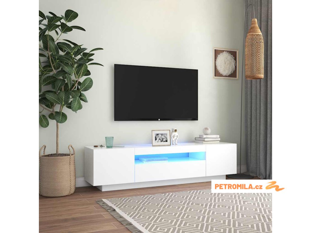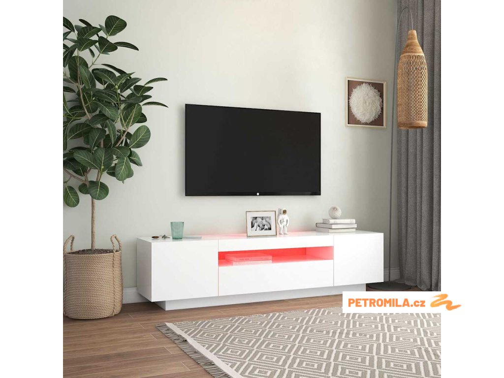 Moderní a praktický design této TV skříňky s LED osvětlením zaujme ve vašem pokoji na první pohled.