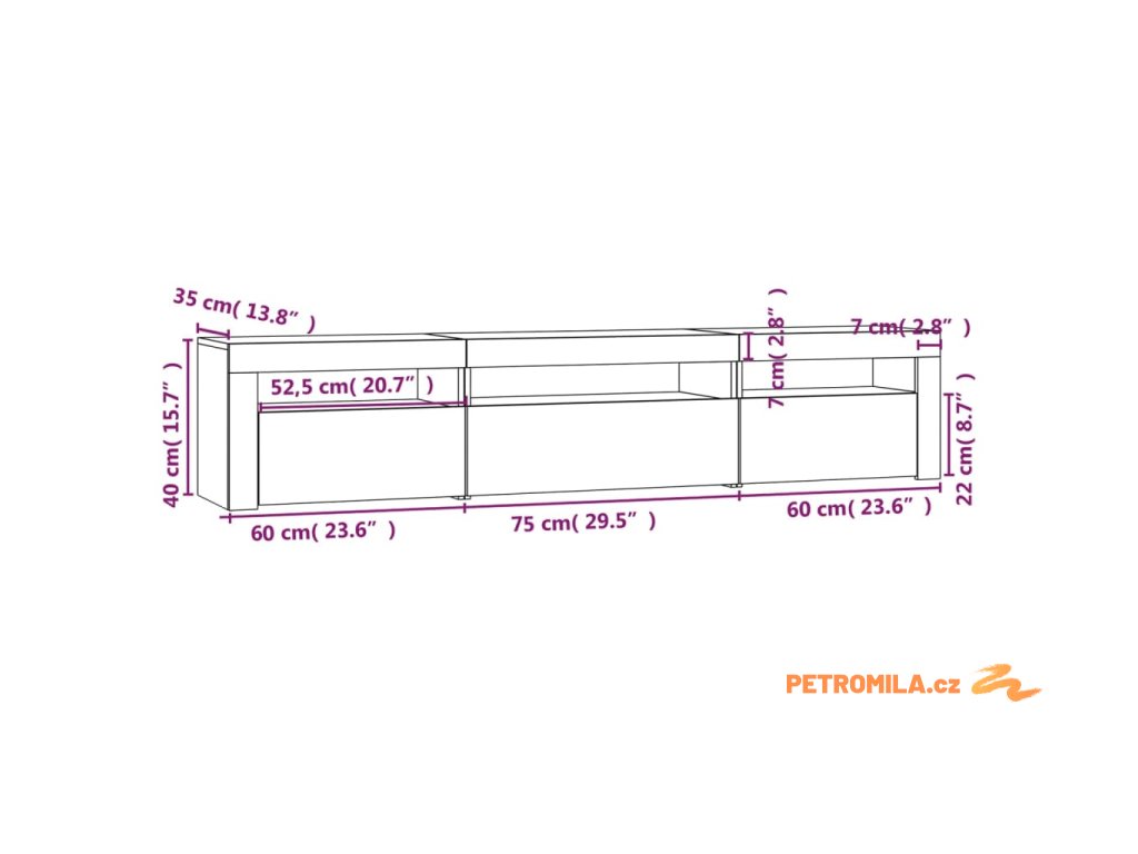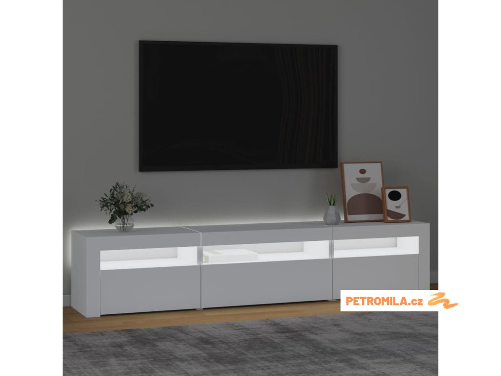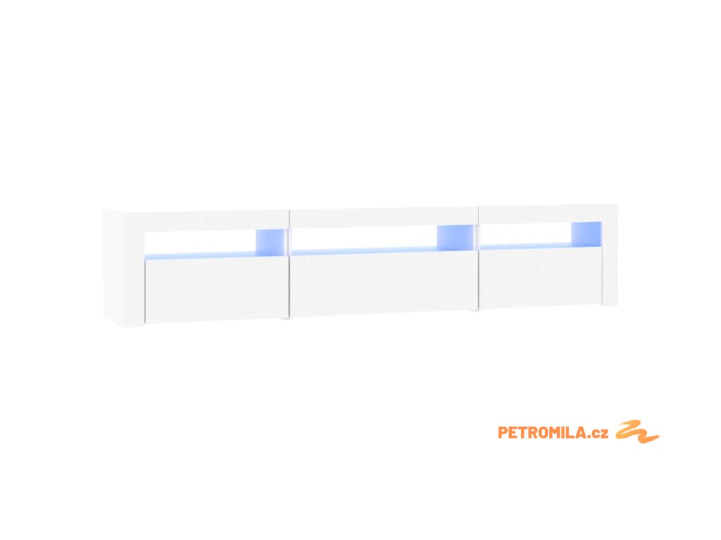 Moderní a praktický design této TV skříňky s LED osvětlením zaujme ve vašem pokoji na první pohled.