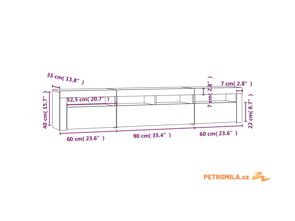TV skříňka s LED osvětlením bílá 210 x 35 x 40 cm