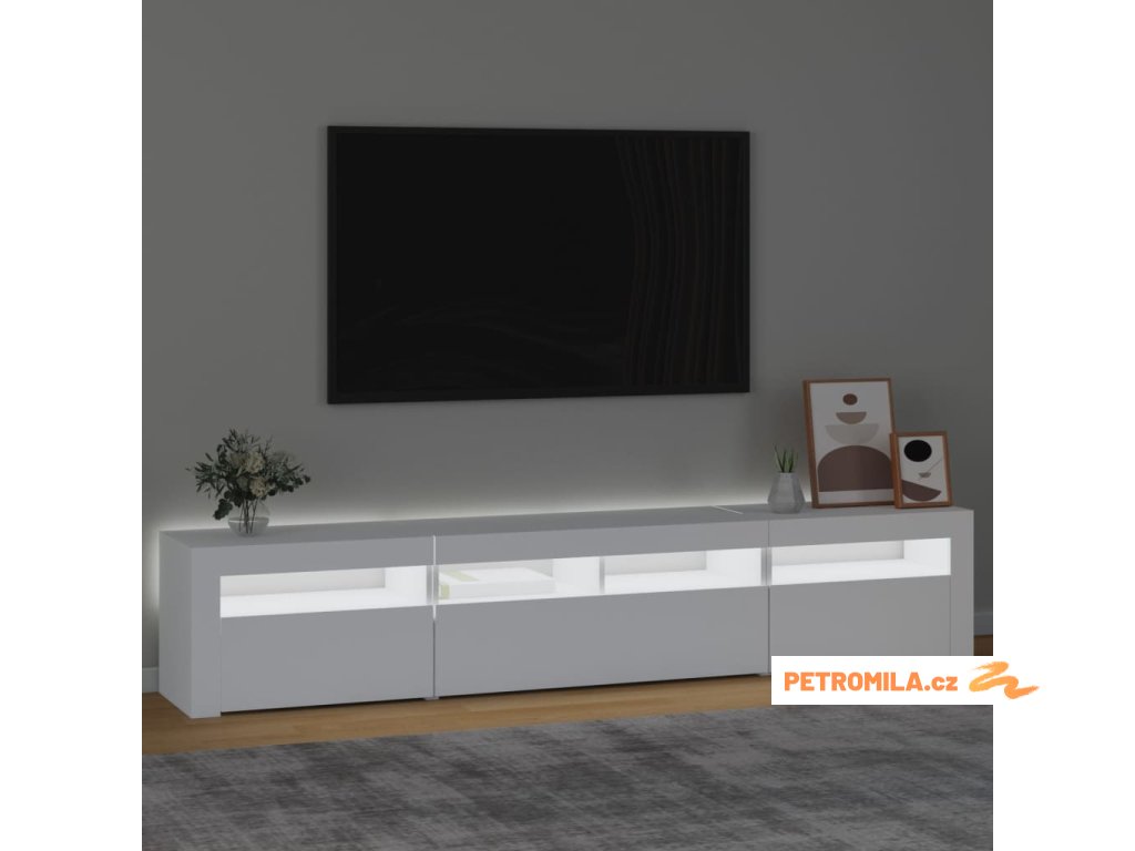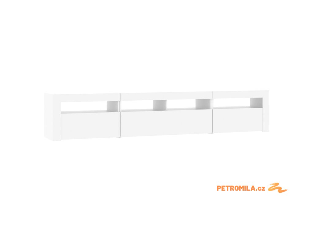 Moderní a praktický design této TV skříňky s LED osvětlením zaujme ve vašem pokoji na první pohled.
