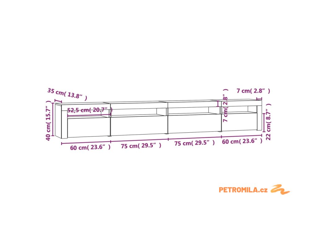 TV skříňka s LED osvětlením bílá 270x35x40 cm