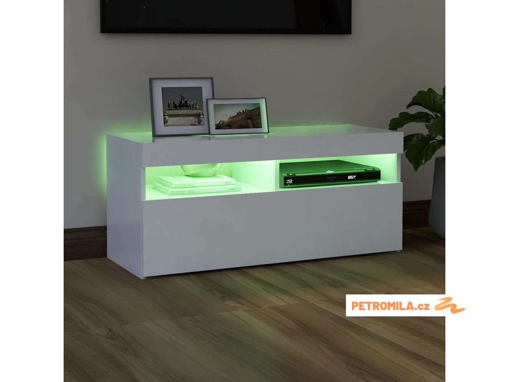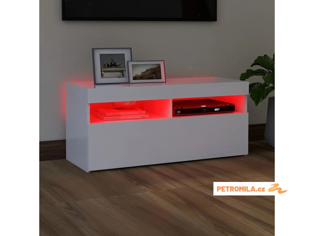TV skříňka s LED osvětlením bílá 90 x 35 x 40 cm