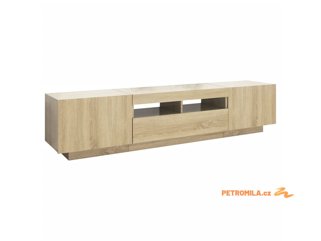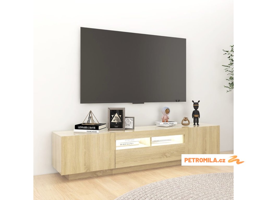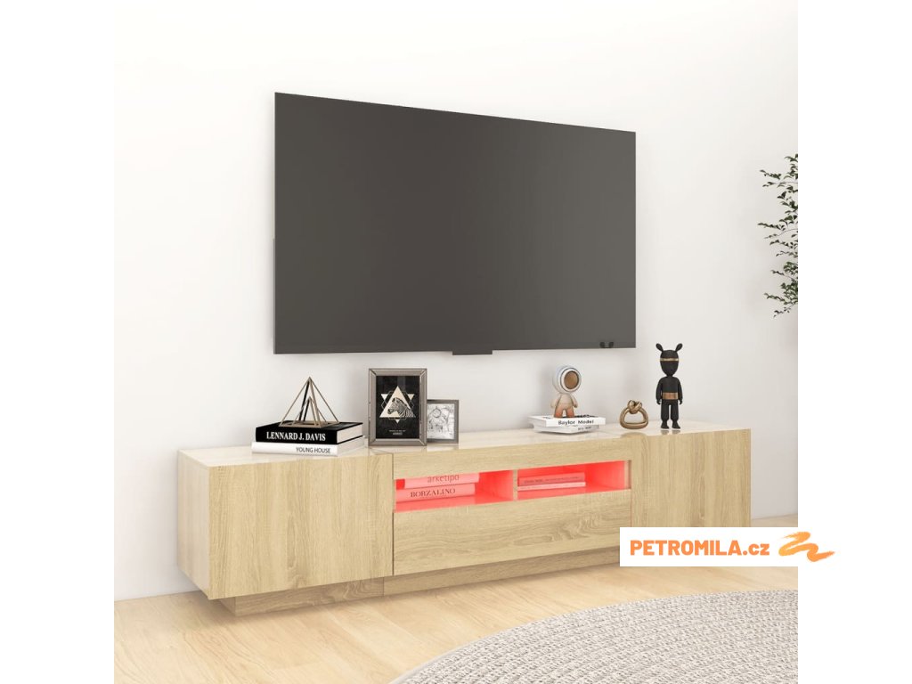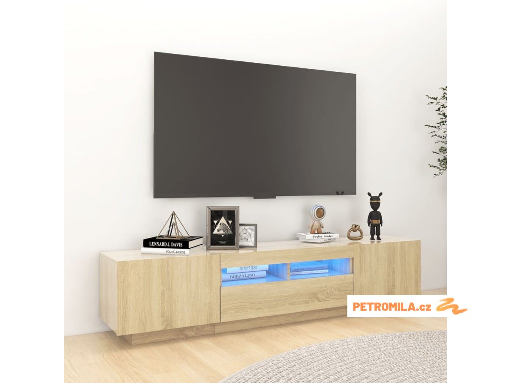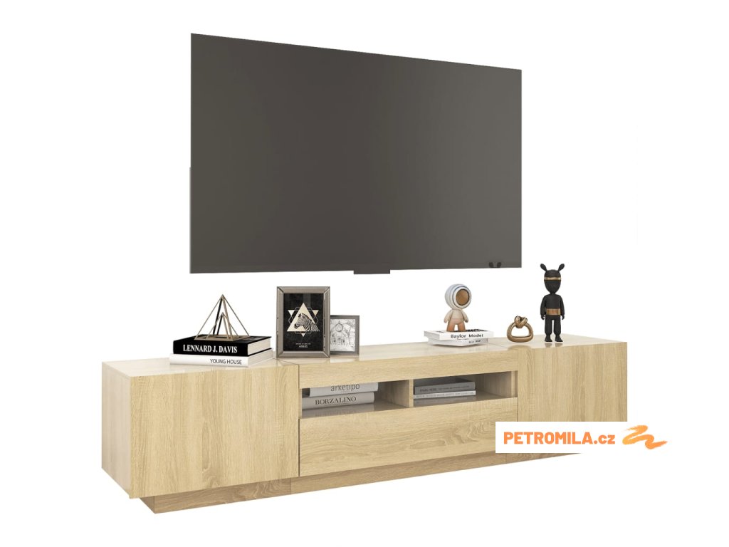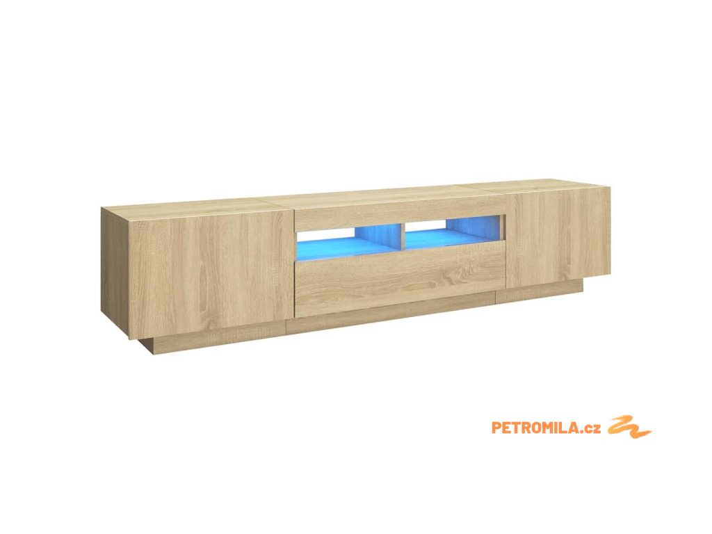 Moderní a praktický design této TV skříňky s LED osvětlením zaujme ve vašem pokoji na první pohled.