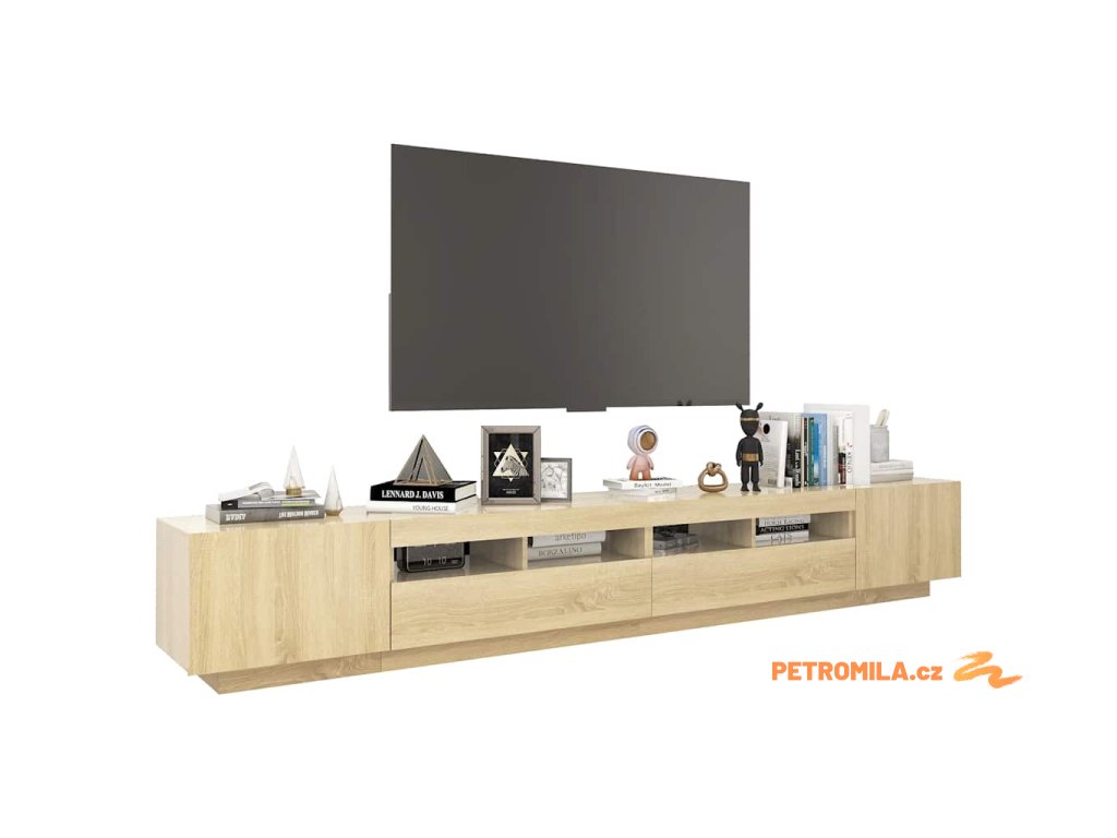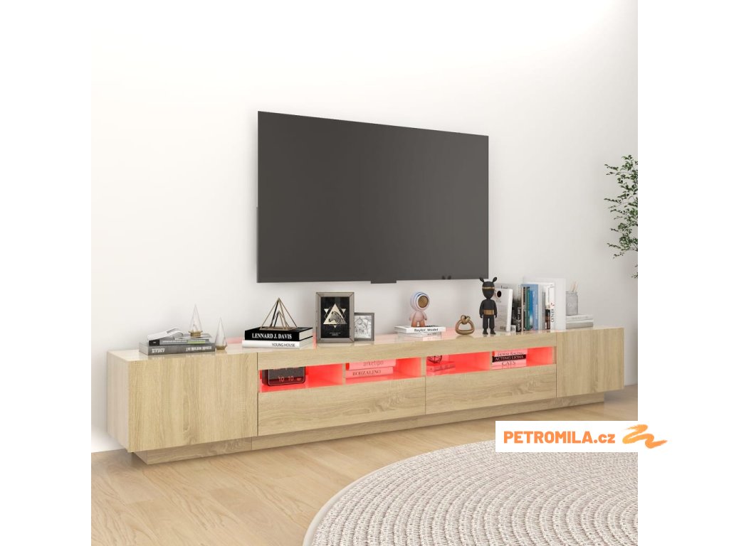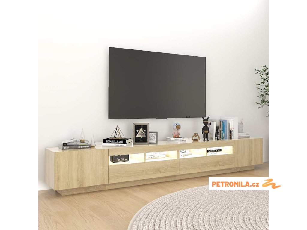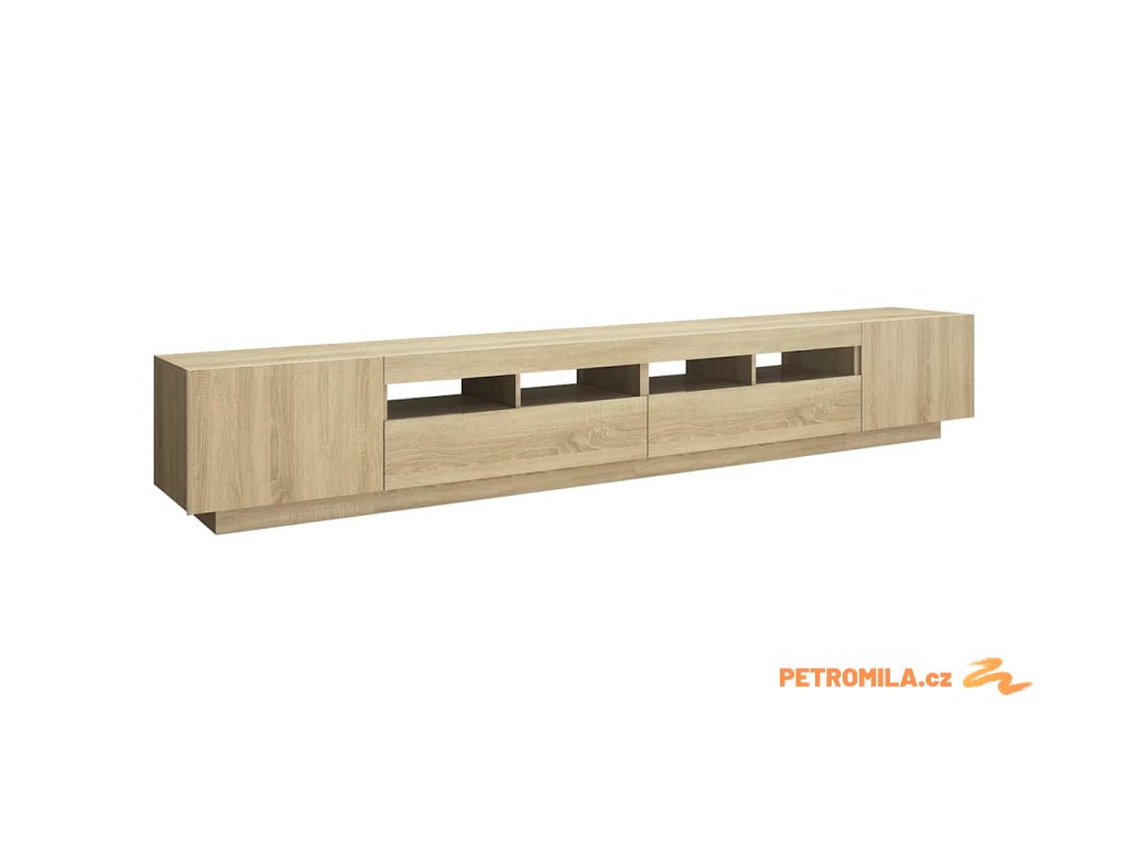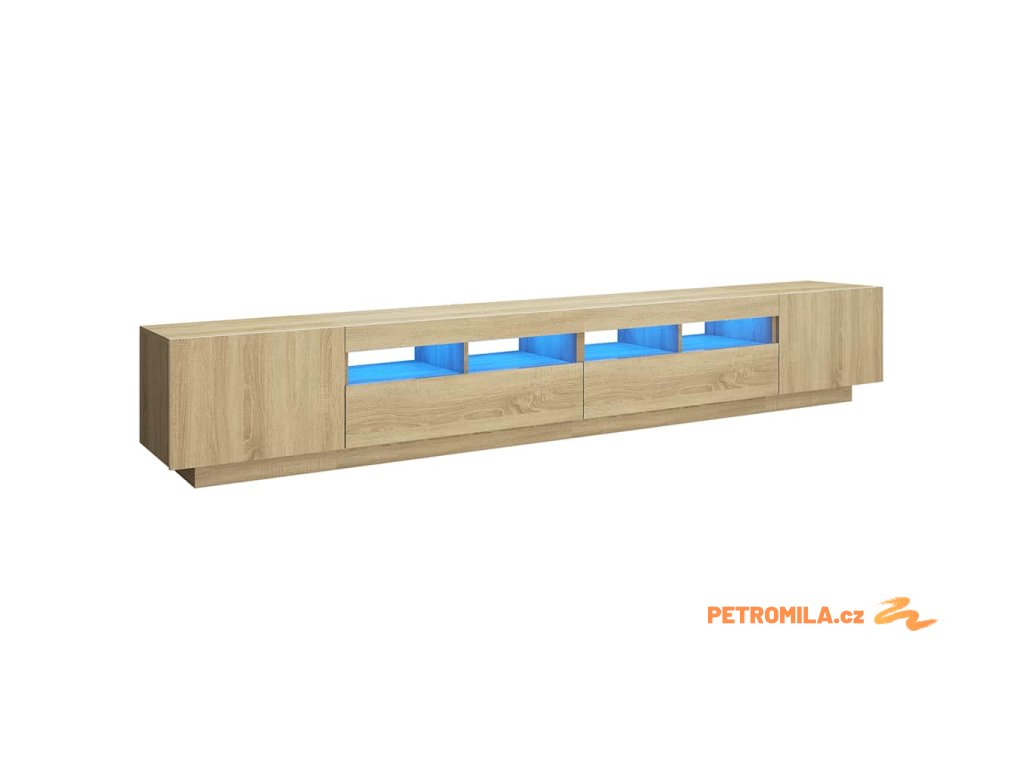 Moderní a praktický design této TV skříňky s LED osvětlením zaujme ve vašem pokoji na první pohled.