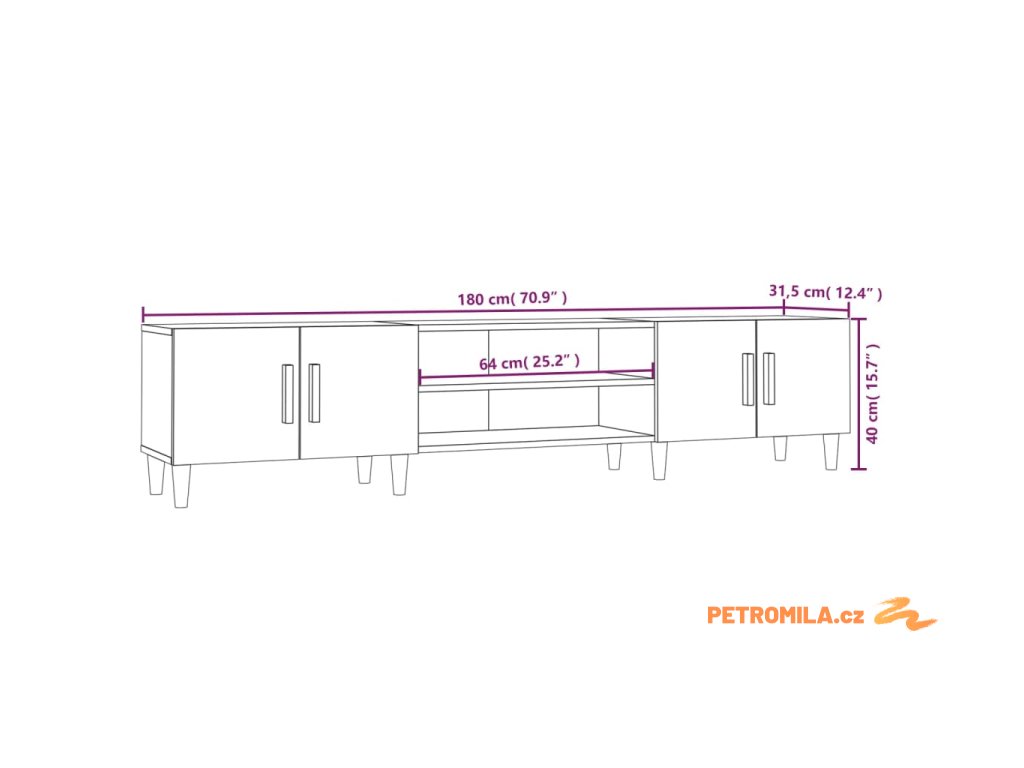 - Dostatek úložného prostoru: TV skříňka je vybavena 4 přihrádkami a 4 dvířky, nabízí tedy dostatek úložného prostoru pro přehledné uložení různých nezbytností, které tak budete mít neustále po ruce.