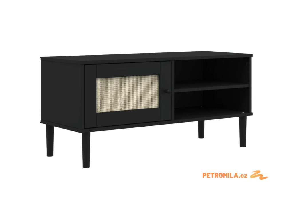 TV skříňka SENJA ratanový vzhled černá 106x40x49 cm borovice