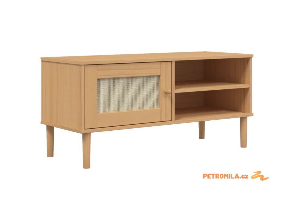 TV skříňka SENJA ratanový vzhled hnědá 106x40x49 cm borovice