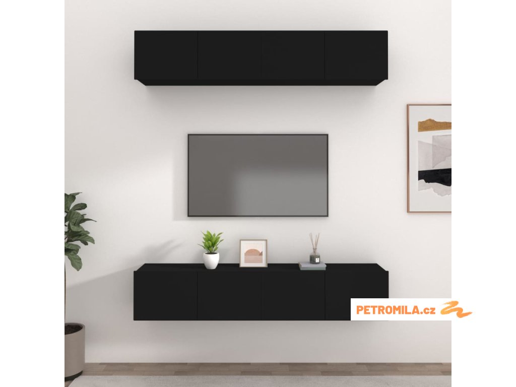 TV skříňky 4 ks černé 80 x 30 x 30 cm kompozitní dřevo