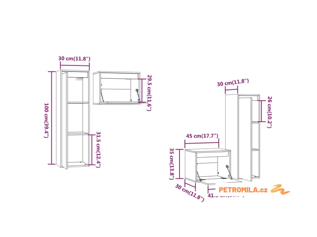 - 2 x TV skříňka: 45 x 30 x 35 cm (Š x H x V)