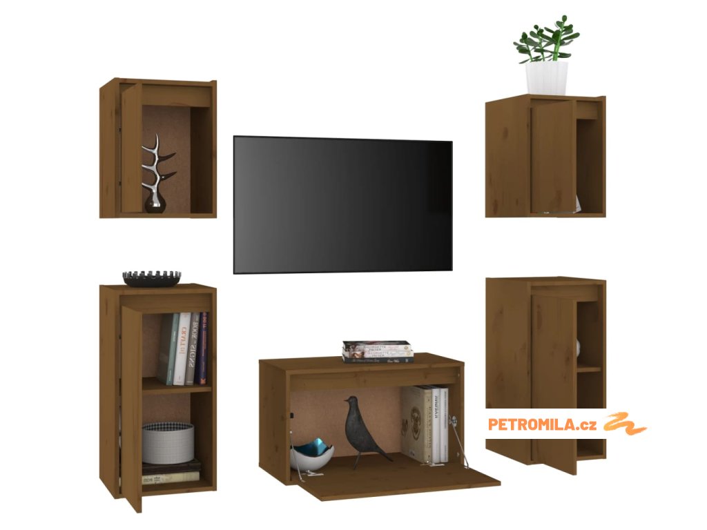 TV skříňky 5 ks medově hnědé masivní borové dřevo