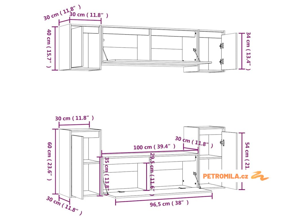 - 2 x TV skříňka: 100 x 30 x 35 cm (Š x H x V)