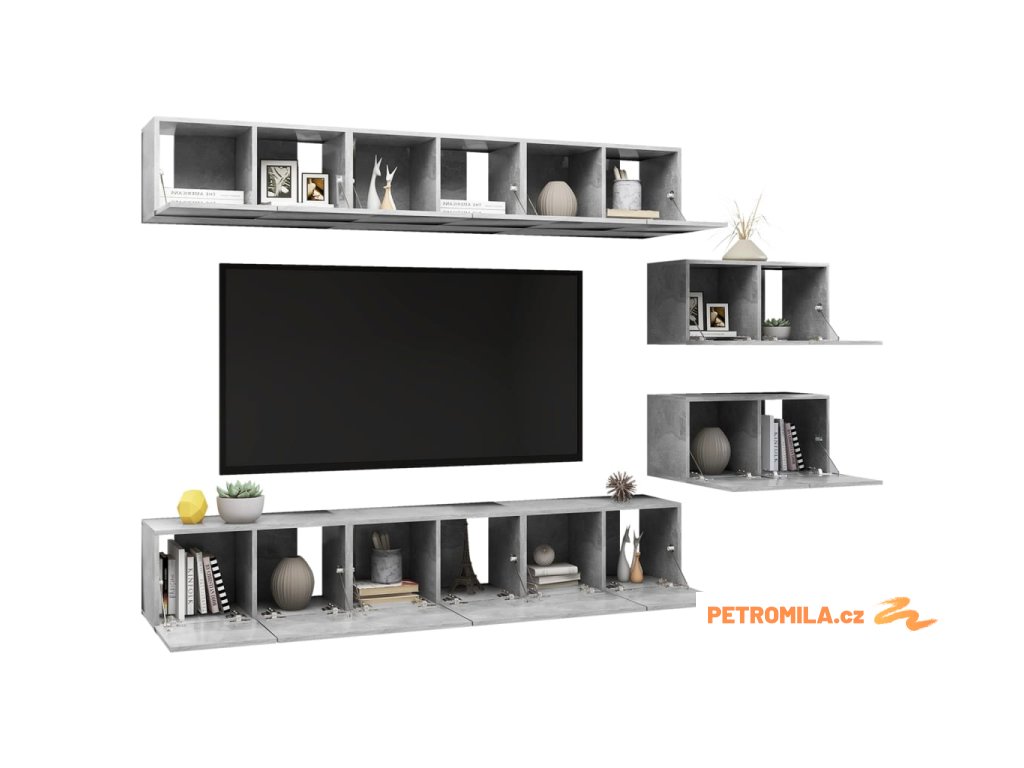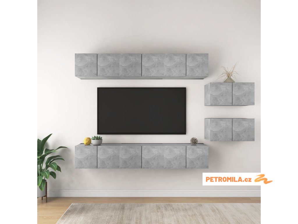 TV skříňky 8 ks betonově šedé kompozitní dřevo