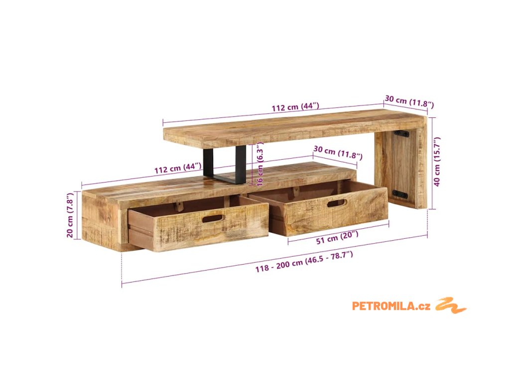 TV stolek (118-200) x 30 x 40 cm masivní dřevo mango
