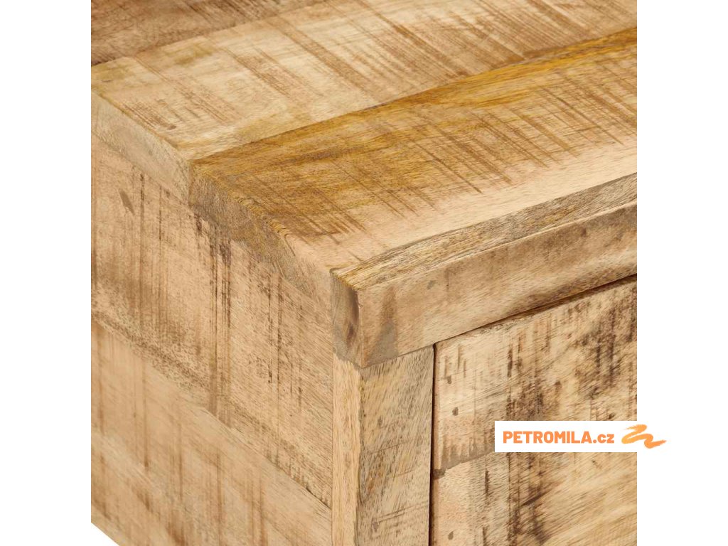 - Masivní mangovníkové dřevo: Masivní mangovníkové dřevo je pevné tropické tvrdé dřevo, ze kterého se vyrábí robustní nábytek. Krásná kresba dřeva propůjčuje každému kusu nábytku jeho jedinečný a od všech ostatních lehce odlišný vzhled.
