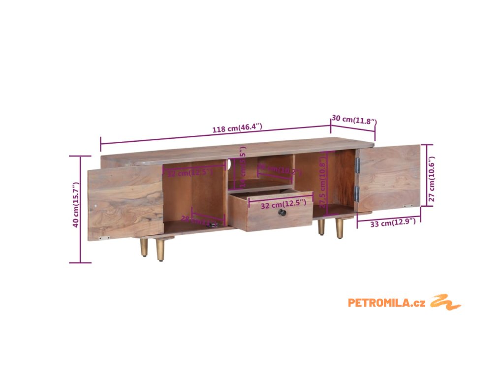 TV stolek 118 x 30 x 40 cm masivní akáciové dřevo