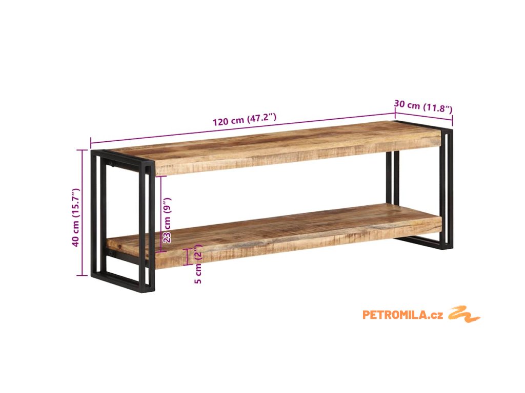 TV stolek 120 x 30 x 40 cm hrubé mangovníkové dřevo